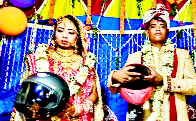 छपरा : सरकार सड़क सुरक्षा को लेकर तमाम जागरूकता अभियान चला रही है. बावजूद इसके यातायात नियमों की अवहेलना कर लोग बिना हेलमेट के दो पहिया वाहनों से सवारी कर रहे हैं. बेनौत गांव की स्वीटी हमेशा लोगों को यातायात नियमों के प्रति जागरूक करती. लोगों को हमेशा सीट बेल्ट व हेलमेट पहन कर वाहन चलाने का सुझाव देती. स्वीटी का कहना है कि उसे अफसोस है कि वह अपने एक संबंधी को जागरूकता का ये पाठ नहीं समझा सकी. परिणाम ये रहा कि एक दिन सड़क हादसे में बाइक पर बैठी एक संबंधी की जान चली गयी. स्वीटी ने संकल्प लिया कि वह अपने खास दिन पर लोगों को एक ऐसा गिफ्ट देगी, जिससे लोगों में जागरूकता आये. आखिर वह दिन आया, स्वीटी ने अपनी शादी में आये बरातियों को हेलमेट भेंट किया व सड़क सुरक्षा के प्रति लोगों को जागरूक किया.
