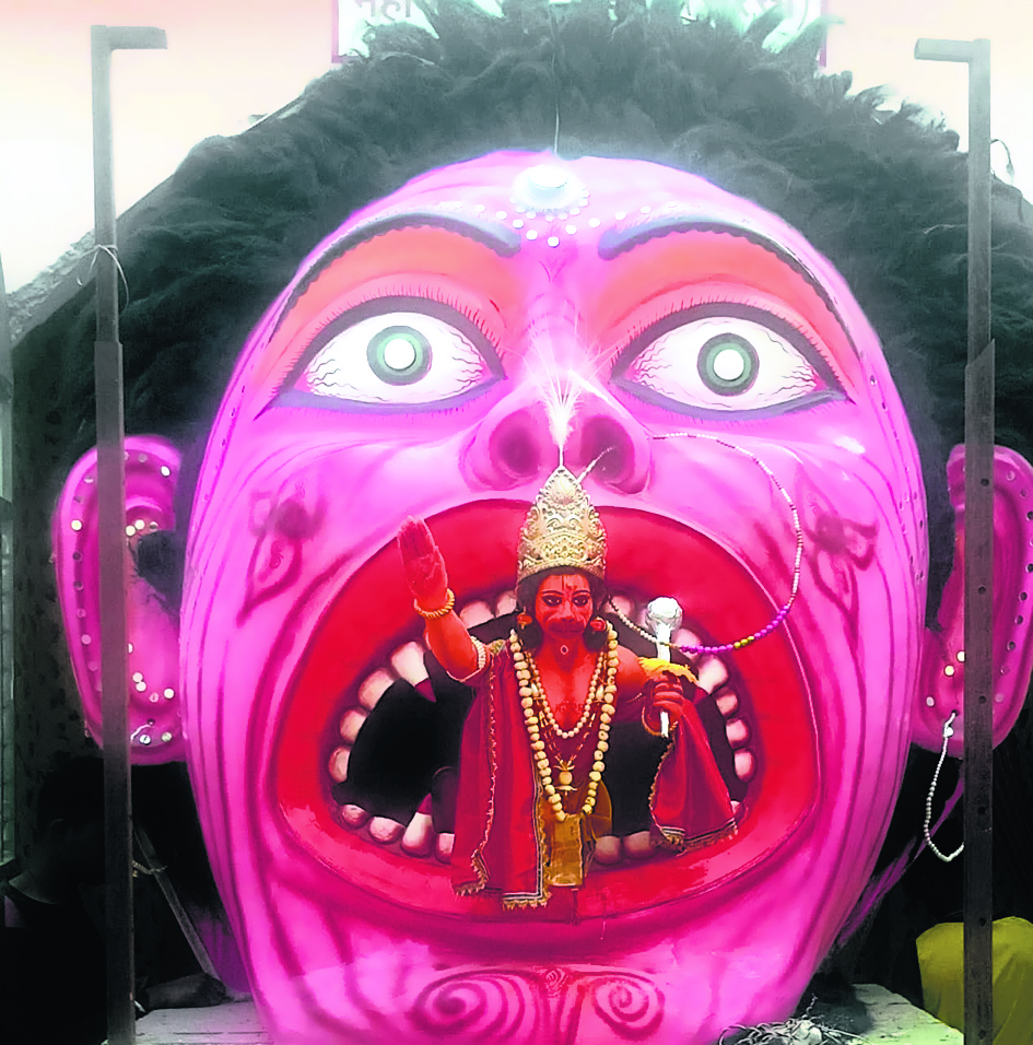 छपरा. नवरात्र को लेकर हर जगह धूम है. शहर की विभिन्न पूजा समितियों अपनी तैयारियों को भी तेज करती जा रही हैं. पूजा समितियों की ओर से पंडाल और मूर्ति निर्माण साज सज्जा आदि का काम युद्ध स्तर पर कराया जा रहा है. पूजा को लेकर एक अलग ही उत्साह है. पूजा आयोजक इस बार कुछ खास करने के मूड में है. शायद यही कारण है कि शहर के विभिन्न चौक-चौराहों पर हर साल से कुछ अलग बड़े और आकर्षक पंडाल बनाए जा रहे है. वही जहां विभिन्न प्रसंगों पर आधारित प्रतिमाएं स्थापित होती है वहां की पूजा समितियां तैयारी में जुट गए हैं और पिछले साल की अपेक्षा कुछ खास कर रहे हैं. एक ऐसा ही प्रतिमा शहर के गांधी विद्यालय दौलतगंज रोड स्थित महंत सुखदेव दास सीताराम मठ में एक बार फिर स्थापित की जा रही है. यह विशाल प्रतिमा है सुरसा के मुख से हनुमान जी के निकलते दृश्य से संबंधित.