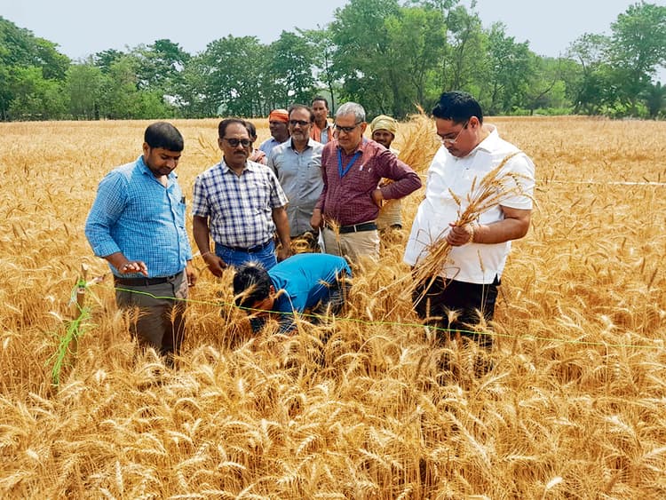 दरियापुर. कृषि विभाग के अधिकारियों ने मुझौना में एक किसान खेत में गेहूं की क्रॉप कटिंग की. फिर उसकी गुणवत्ता की जांच की. सहायक कृषि निदेशक पटना के विजय कुमार चौधरी व जिला सांख्यिकी पदाधिकारी राकेश रंजन के नेतृत्व में मंगलवार को अधिकारियों की टीम किसान के खेत में पहुंची. टीम में बीडीओ दीनबंधु दिवाकर, सीओ जयंत कुमार गौरव व प्रखंड सांख्यिकी दाधिकारी शैलेन्द्र पांडेय भी शामिल थे. किसान सुजीत कुमार के गेहूं के खेत में अधिकारियों की टीम ने 50 एस्क्वायर मीटर में गेहूं की फसल की क्रॉप कटिंग करायी. जिसमें कुल 21 किलोग्राम गेहूं निकला. अधिकारियों ने बताया कि किसान के खेत में अच्छी फसल लगी है. किसान ने कृषि विभाग से ही गेहूं का बीज लिया था. फिर विभाग की देखरेख में गेहूं की बुआई की थी. अधिकारियों ने वहां मौजूद अन्य किसानों से भी इसी तरह से खेती कर लाभ उठाने की अपील की. अधिकारियों ने कहा कि अब ऐसी तकनीक आ गयी है कि कम लागत में किसान अच्छी फसल हासिल कर ज्यादा मुनाफा ले सकते हैं.