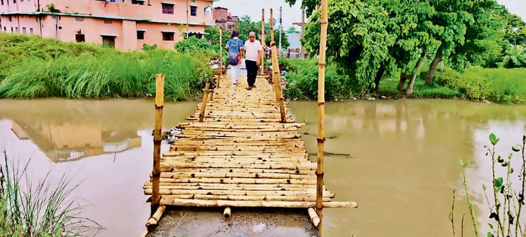 तरैया प्रखंड के पचभिंडा पंचायत के शाहनेवाजपुर गांव से होकर गुजरने वाली गंडक नहर में शाहनेवाजपुर-मुरलीपुर गांव को जोड़ने वाली पुल ध्वस्त होने के बाद चचरी के सहारे लोग आते-जाते है. लोग वर्षों से उक्त जर्जर बिना रेलिंग के पुल से आवागमन करते थे. लेकिन विगत अप्रैल माह में जर्जर पुल ध्वस्त हो गया. जिसके बाद स्थानीय लोगों ने ध्वस्त पुल पर बांस का चचरी बना कर पुल पार कर रहे है. उक्त पुल की तरफ न तो प्रशासन का ध्यान जा रहा है न गंडक विभाग न जनप्रतिनिधियों का. स्थानीय मुखिया प्रेमा देवी के प्रतिनिधि हरेन्द्र सहनी ने अपने निजी कोष से ध्वस्त पुल की ढलायी करायी थी. इस बार उक्त ढलाई के दूसरे भाग का पुल ध्वस्त हो गया. लोगों व स्कूली बच्चों को चचरी पुल पार कर तरैया बाजार तथा स्कूल जाना पड़ता है.डिस्क्लेमर: यह प्रभात खबर समाचार पत्र की ऑटोमेटेड न्यूज फीड है. इसे प्रभात खबर डॉट कॉम की टीम ने संपादित नहीं किया है