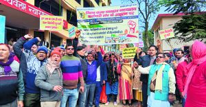 छपरा(कोर्ट) . व्यवहार न्यायालय छपरा के कर्मचारी दूसरे दिन भी हड़ताल पर रहें. जिसके कारण व्यवहार न्यायालय में किसी भी न्यायालय में कोई भी सुनवाई गवाही या कोई अन्य कार्रवाई नहीं हुई. न्यायालय का काम ठप रहा. व्यवहार न्यायालय के इजलास का दरवाजा तक नहीं खुला. न्यायालय परिसर में पूर्णतया सन्नाटा पसरा था. हड़ताल की जानकारी ग्रामीण क्षेत्रों में हो जाने के कारण ग्रामीण क्षेत्र से भी कम ही लोग आये थे. सभी न्यायिक पदाधिकारी अपने-अपने चेंबर में बैठे रहे. पक्षकार से ज्यादा अधिवक्ता ही न्यायालय परिसर में घूमते नजर आये. न्यायालय कर्मी अपने मांगों को लेकर न्यायालय परिसर में धरना प्रदर्शन कर रहे थे और अपनी मांगों को अति शीघ्र पूरा करने की मांग बिहार सरकार से कर रहे थे. व्यवहार न्यायालय के कर्मचारी संघ के अध्यक्ष हीरा नाथ ठाकुर एवं रवि प्रकाश तथा सचिव श्रवण कुमार ने कहा कि जब तक बिहार सरकार हम लोगों की चार सूत्री मांग नहीं मानती है. तब तक हम सब अनिश्चितकालीन हड़ताल पर ही रहेंगे. जिन लोगों के परिजन जेल में है या उनकी जमानत की सुनवाई होनी थी या जमानत बंध पत्र दाखिल करना है. काफी मायूस होकर अपने काम को कराने के लिए न्यायालय परिसर में घूम रहे थे. उधर देर शाम हड़ताल समाप्त होने की सूचना आती रही. हालांकि संगठन द्वारा इसकी पुष्टी नहीं हो सकी.