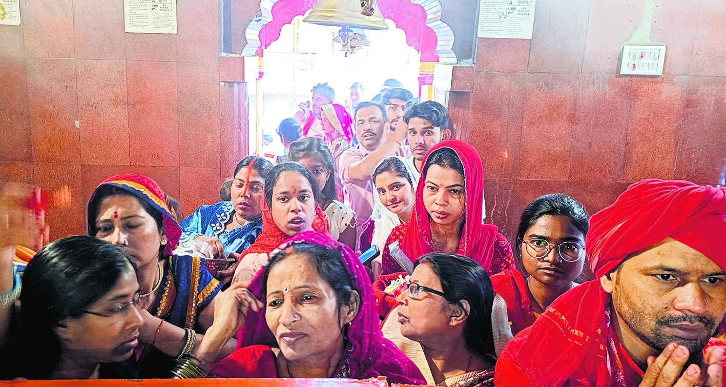 दिघवारा. वासंतिक नवरात्र के सातवें दिन शुक्रवार को आमी स्थित मां अंबिका भवानी के मंदिर में भक्तों की भारी भीड़ देखने को मिली. विभिन्न हिस्सों से आए श्रद्धालु विधिवत रूप से पूजा-अर्चना में तल्लीन नजर आए. मंदिर के प्रत्येक कोने में भक्तों का हुजूम था और हर कोई मां अंबिका की आस्था में डूबा हुआ था. मंदिर का माहौल भक्तिमय था और भक्तों की भीड़ दोपहर तक लगातार बढ़ती रही. सुबह से ही श्रद्धालुओं का मंदिर पहुंचने का सिलसिला शुरू हो गया था और जैसे-जैसे दिन चढ़ता गया वैसे-वैसे भक्तों की संख्या बढ़ती गयी. पाठ करने वाले श्रद्धालुओं ने मंदिर के विभिन्न हिस्सों में स्थान ग्रहण कर दुर्गा सप्तशती का पाठ पूरा किया. वहीं गर्भगृह के अंदर पंडित सत्येंद्र तिवारी, रंजन तिवारी, शिवम तिवारी और बटुक बाबा ने श्रद्धालुओं के प्रसाद और चुनरी को पिंडी रूप पर अर्पित किया और सभी की खुशहाली की कामना की. इसके अलावा पाठ करने वाले श्रद्धालुओं ने मां दुर्गा के कालरात्रि रूप की पूजा-अर्चना की और उनका आशीर्वाद प्राप्त किया. इससे पूर्व, गुरुवार की रात को नवरात्र के छठे दिन मां अंबिका का विशेष श्रृंगार किया गया. श्रृंगार में मां के पिंडी रूप को आभूषण, फूल और कीमती कपड़ों से सजाया गया था, जिसे देखकर श्रद्धालु भाव-विभोर हो गये. यह दृश्य देख श्रद्धालु मां के दरबार में और भी श्रद्धा के साथ पहुंचें और अपनी आस्थाओं को मां के चरणों में समर्पित किया.