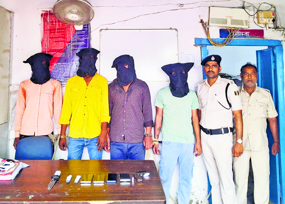मकेर. थाना क्षेत्र के फुलवरिया स्थित मोतीलाल राय के टोला स्थित उत्क्रमित मध्य विद्यालय के बरामदा में एकत्रित होकर अपराध की घटना को अंजाम देने की योजना बनाते चार बदमाशों को पुलिस ने हथियार व कारतूस के साथ गिरफ्तार किया है. जबकि एक बदमाश भागने में सफल रहा. जिसको लेकर थाना में प्रथमिकी दर्ज की गयी. प्राथमिकी में बताया गया कि पुलिस को गुप्त सूचना मिला था कि फुलवरिया सरकारी विद्यालय मे चार पांच बदमाश बैंक, सीएसपी या आभूषण दुकान में डकैती करने की योजना बना रहे हैं. उक्त सूचना पर त्वरित कार्रवाई करते हुए मकेर थानाध्यक्ष प्रमोद कुमार द्वारा टीम गठित कर उक्त स्थान पर छापामारी की गयी. छापामारी के क्रम में पुलिस टीम को देखकर सभी बदमाश भागने का प्रयास किये. इस दौरान पुलिस टीम द्वारा चार बदमाशों को पकड़ लिया गया. जबकि एक बदमाश भागने में सफल रहा. गिरफ्तार बदमाशों की तलाशी में एक देशी पिस्टल, एक कारतूस, तीन चाकू व चार मोबाइल बरामद हुआ. पुलिस द्वारा की गयी पूछताछ में गिरफ्तार बदमाश फुलवरिया निवासी फकरे आलम उर्फ राजा द्वारा जिलान्तर्गत कई अपराध की घटना में संलिप्ता को स्वीकार किया गया. गिरफ्तार बदमाशों में मकेर थाना क्षेत्र के फुलवरिया निवासी नाजिर आलम का पुत्र फकरे आलम उर्फ राजा, डीही निवासी उमेश राय का पुत्र परशुराम कुमार, दादनपुर निवासी शिव शंकर सिंह का पुत्र सुशांत कुमार, चकिया निवासी मैनेजर राय का पुत्र कुन्दन कुमार उर्फ बुलेट शामिल है.