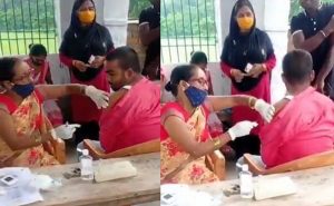 सोशल मीडिया पर एक वीडियो तेजी से वायरल हुआ है. जिसमें टीकाकरण केंद्र पर एक महिला नर्स युवक को टीका लगा रही है. इस दौरान वो सिरिंज को तैयार करती दिखती है. रूइ भी तैयार करती है लेकिन वैक्सीन नहीं लेती और खाली सुई ही युवक के अंदर इंजेक्ट कर देती है. युवक की नजर इस दौरान इसपर नहीं पड़ती है.