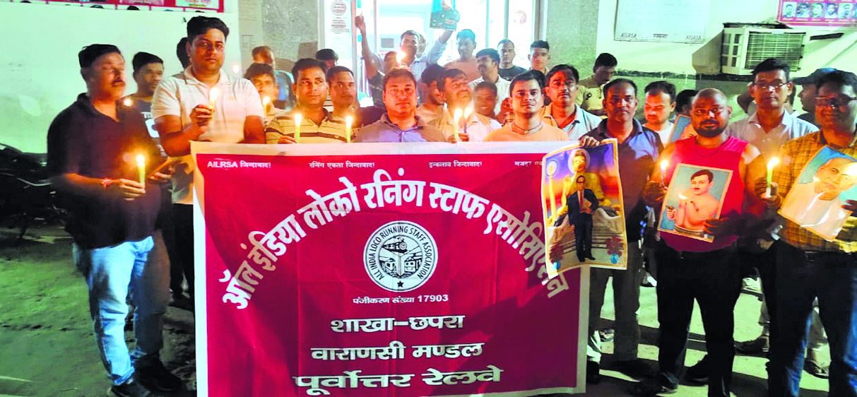 छपरा. ऑल इंडिया लोको रनिंग स्टाफ एसोसिएशन के बैनर तले गुरुवार की शाम छपरा जंक्शन पर लोको रनिंग स्टाफ ने एकजुट होकर कैंडल मार्च निकाला. यह मार्च रांची मंडल में साउथ ईस्टर्न रेलवे के लोको पायलटों द्वारा चलाये जा रहे आंदोलन के समर्थन में आयोजित किया गया. मार्च की शुरुआत क्रु लॉबी कार्यालय से हुई, जो प्लेटफार्म संख्या एक और सर्कुलेटिंग एरिया होते हुए स्टेशन के विभिन्न हिस्सों तक पहुंचा. इस दौरान कर्मचारियों ने जोरदार नारेबाजी कर अपनी मांगों को लेकर आवाज बुलंद की. शाखा मंत्री रणधीर सिंह ने बताया कि रांची में चल रहा यह आंदोलन रेलवे के लोको पायलटों की समस्याओं को उजागर करता है और हम पूरी तरह से उनके साथ हैं. उन्होंने बताया कि आंदोलन की मुख्य मांगों में लोको पायलट से नौ घंटे से अधिक ड्यूटी न ली जाए, सुरक्षा नियमों को बायपास कर ड्यूटी कराना बंद हो, साप्ताहिक विश्राम की अवधि 16 से बढ़ाकर 30 घंटे की जाए सहित अन्य मांगे शामिल है. रणधीर सिंह ने यह भी कहा कि रेल प्रशासन यदि कर्मचारियों की इन जायज़ मांगों पर विचार नहीं करता है, तो आगे और भी व्यापक आंदोलन की रूपरेखा तैयार की जाएगी. कैंडल मार्च में अजीत कुमार, दीपक कुमार, रंजन कुमार, विनय कुमार, के. के. दास, रविशंकर प्रसाद, जितेश कुमार, रणजीत सिंह सहित बड़ी संख्या में रनिंग स्टाफ और रेलवे कर्मी शामिल हुए.