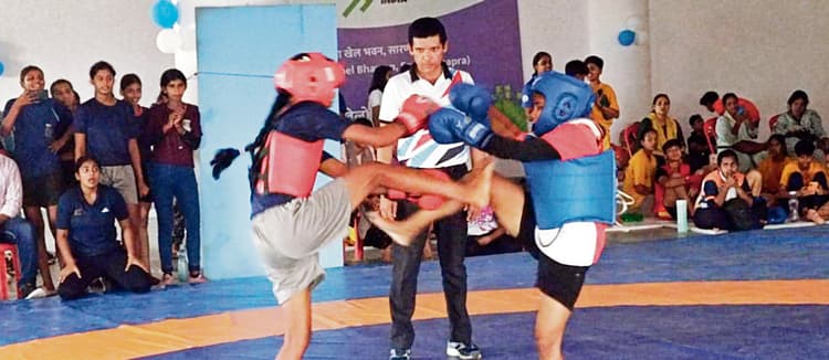 छपरा. खेल मंत्रालय और जिला प्रशासन के संयुक्त तत्वावधान में सारण के खेल भवन में आयोजित राज्य स्तरीय स्कूली बालिका वूशु प्रतियोगिता में प्रतिभागियों ने अपने खेल कौशल का जमकर प्रदर्शन किया. प्रतियोगिता के दौरान बच्चे एक दूसरे को मात देने के लिए हर वो तकनीक अपना रहे थे जो उनके प्रशिक्षकों ने बताया था