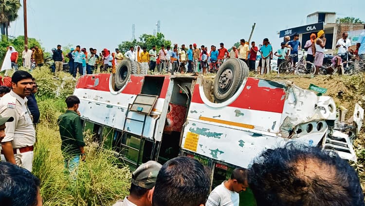 बनियापुर. रविवार को दोपहर 12 बजे एक यात्री बस के पलटने से छह से अधिक लोग घायल हो गये. घटना बनियापुर से छपरा जा रही एक बस के अनियंत्रित होने के कारण घटी, जब वह एनएच 331 पर कन्हौली संग्राम गांव के पास स्थित टीवीएस एजेंसी के समीप बिजली के खंभे से टकरा गयी और सड़क के किनारे 10 फीट गहरे गड्ढे में पलट गयी. प्राप्त जानकारी के अनुसार बस का टक्कर इतना जबरदस्त था कि सभी चक्के ऊपर की ओर पलट गये और यात्री नीचे दब गये. हादसे में बस बुरी तरह से क्षतिग्रस्त हो गयी. घटना के बाद घटनास्थल पर सैकड़ों लोगों की भीड़ जमा हो गयी. स्थानीय वार्ड सदस्य प्रमोद राय और अन्य ग्रामीणों ने तत्काल राहत कार्य शुरू किया और घायलों को बाहर निकाला. इस दौरान, चालक और खलासी मौके से फरार हो गये.