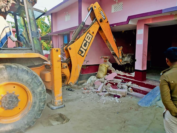 भेल्दी. थाना क्षेत्र के बांसडीह गांव में हत्या के फरार आरोपित बच्चा सिंह के घर पर पुलिस ने रविवार को कुर्की-जब्ती की बड़ी कार्रवाई की. थाना अध्यक्ष संदीप कुमार व अपर थाना अध्यक्ष ओम प्रकाश के नेतृत्व में भारी पुलिस बल के साथ टीम मौके पर पहुंची और बुलडोजर की मदद से आरोपित के घर के मुख्य द्वार, खिड़की और आगे का हिस्सा ध्वस्त कर दिया. गौरतलब हो कि 30 अक्टूबर को जमीन विवाद के कारण बच्चा सिंह और उसके परिवार ने अपने पट्टीदार 63 वर्षीय छोटेलाल सिंह और उनके परिजनों पर हमला कर दिया था. इस हमले में छोटेलाल सिंह गंभीर रूप से घायल हो गये थे, जिन्हें इलाज के लिए पटना पीएमसीएच में भर्ती कराया गया था. वहां इलाज के दौरान उनकी मौत हो गयी. घटना के बाद से ही आरोपित फरार था और पुलिस लगातार उसकी तलाश कर रही थी, लेकिन वह पुलिस को चकमा देता रहा.