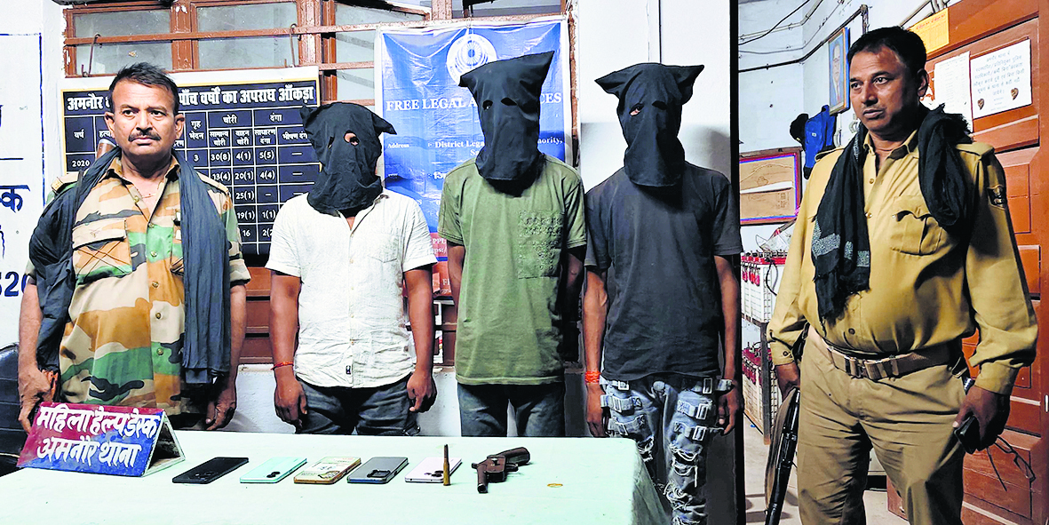 अमनौर. गुप्त सूचना के आधार पर अमनौर पुलिस ने छापेमारी कर लूट की योजना बना रहे तीन लोगों को अवैध हथियार के साथ गिरफ्तार कर जेल भेज दिया. अमनौर पुलिस ने बताया कि थाना को सूचना प्राप्त हुई कि थाना क्षेत्र के अमनौर सुल्तान स्थित स्टेट बोरिंग के पास कुछ अपराधकर्मी अवैध हथियार के साथ एकत्रित होकर लूट की योजना बना रहे हैं. सूचना के बाद पुलिस त्वरित कार्रवाई करते हुए छापेमारी दल गठित कर बताये स्थान पर छापेमारी किया गया. जहां से तीन बदमाशों को धर दबोचा गया. जिसके पास से एक देशी कट्टा, एक जिंदा कारतूस दो लूट की मोबाइल बरामद किया गया. पकड़े गये बदमाशों में थाना क्षेत्र के पुरैना निवासी रविकांत कुमार उर्फ रवि, विशाल कुमार तथा सहादी गांव निवासी संचित कुमार सिंह का नाम शामिल है. थानाध्यक्ष कुंदन कुमार ने बताया कि पकड़े गये बदमाशों से पूछताछ के क्रम में स्थानीय थाना कांड संख्या 123/25 लूट कांड में अपने एवं अपने अन्य तीन साथियों की पूर्ण संलिप्तता स्वीकार किया गया है. वहीं लूट कांड में लूटी गयी दो मोबाइल भी बरामद किया गया है. इस मामले में प्राथमिकी दर्ज कर तीनों को जेल भेज दिया गया. वहीं अन्य बदमाशों की गिरफ्तारी के लिए छापेमारी की जा रही है.