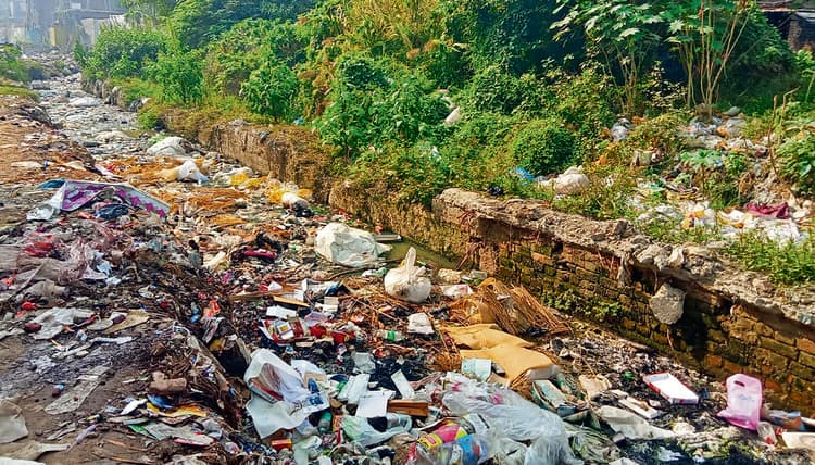 पॉलीथिन के कारण बंद हो गये प्रमुख नाले, शहर में ऐसे दर्जनों नाले हैं, जिनमें पॉलीथिन की भरमार है. शहर के सबसे बड़े खनुआ नाले में भी दर्जनों जगह प्लास्टिक की मात्रा दिख रही है. सोनारपट्टी, सरकारी बाजार, मौना बाजार आदि से गुजरने वाले खनुआ नाले के हिस्से में भी प्लास्टिक की भरमार है. सरकारी बाजार, मौना व करीम चक में खनुआ नाले का अधिकतर हिस्सा पूरी तरह प्लास्टिक से भरा हुआ है. जिस कारण इन इलाके में नाला जाम होने के कारण जलजमाव को स्थिति बनी हुई है.पर्यावरण व सेहत पर डाल रहा असर
