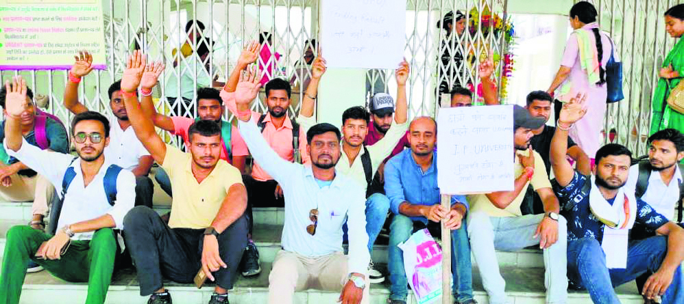 छपरा. ऑल इंडिया स्टूडेंट्स फेडरेशन के नेता राहुल कुमार यादव के नेतृत्व में विश्वविद्यालय मुख्य द्वार पर नारेबाजी कर प्रदर्शन किया. स्नातक तृतीय खंड मार्कशीट में सुधार नहीं होने व कॉलेजों एवं विश्वविद्यालय में शिकायत, सुझाव आवेदनों पर कोई विचार नहीं होने पर छात्रों का गुस्सा दिखा. छात्र-छात्राओं के हंगामा को देखकर कुलपति एवं परीक्षा नियंत्रक पहुंचे और छात्रों को आश्वासन दिया कि यथाशीघ्र त्रुटिपूर्ण मार्कशीट में सुधार कर कॉलेजों में भेज दिया जायेगा. मौजूद छात्र-छात्राएं विश्वविद्यालय अधिकारियों के आश्वासन से संतुष्ट नहीं थे. वह तत्काल मार्कशीट में सुधार करने और अन्य मांगों पर यथाशीघ्र विचार करने की बातें कह रहे थे. बहुत समझाने के बाद छात्र-छात्राएं शांत हुए. प्रदर्शन में विशाल कुमार, चंद्रभान सिंह, रोहित प्रजापति, शिवनंदन कुमार , रोहित कुमार, कौशल कुमार पांडेय, विकास कुमार, वीरेंद्र कुमार, राजू हुसैन, उस्मान अली, नसीम अख्तर, रितिक सिंह, विशाल ब्याहुत, प्रवीण कुमार, प्रियंका कुमारी, अर्पिता कुमारी गोंड, राजा राम, सतेन्द्र मांझी, संजीत यादव आदि मौजूद थे.
