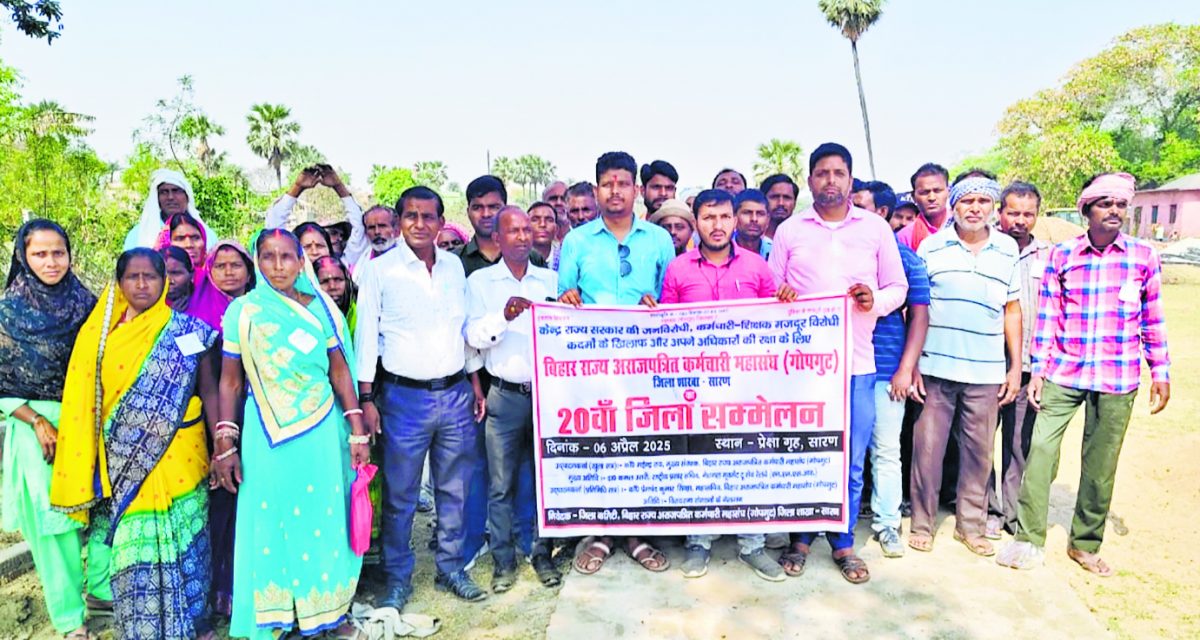 Saran News : रविवार को बिहार राज्य अराजपत्रिक कर्मचारी महासंघ (गोप गुट) के 20वें जिला सम्मेलन में शामिल होने से पूर्व, बनियापुर प्रखंड मुख्यालय स्थित क्रीड़ा मैदान में प्रखंड अंतर्गत सभी पंचायतों के स्वच्छता पर्यवेक्षक और कर्मी एकत्रित हुए और अपनी विभिन्न मांगों के समर्थन में विरोध प्रदर्शन किया.