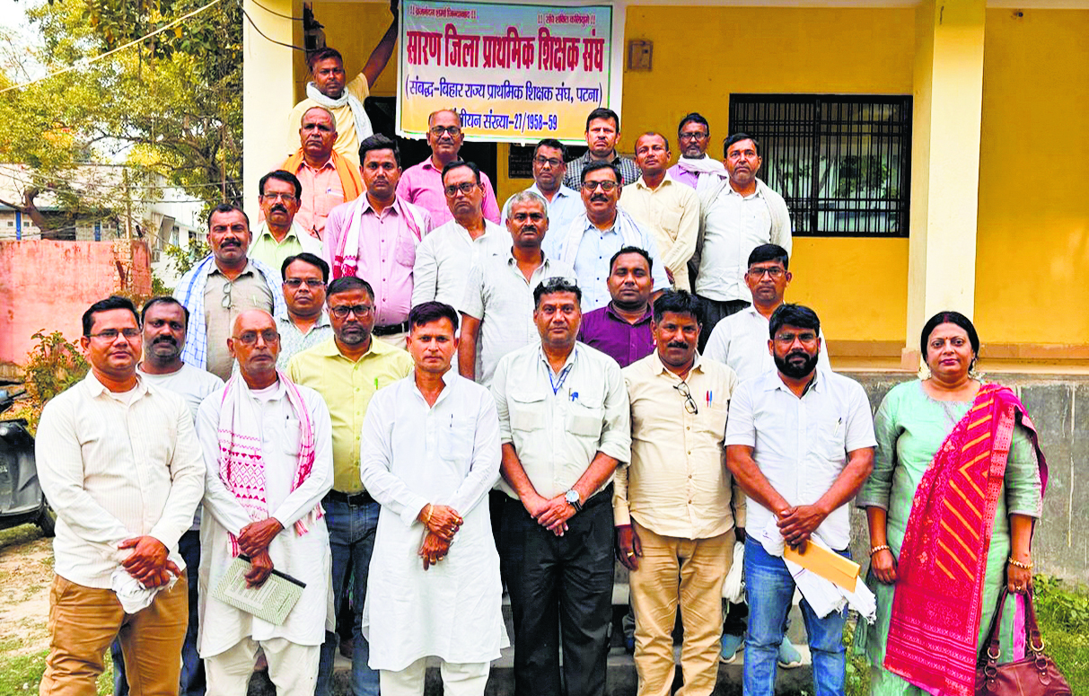 छपरा. लक्ष्मी नारायण लाइब्रेरी में सारण जिला प्राथमिक शिक्षक संघ की बैठक जिला अध्यक्ष अरविंद कुमार यादव की अध्यक्षता में संपन्न हुयी. जिसमें मांग की गयी की 2003-05 डीपीइ प्रशिक्षित का अंतर वेतन का भुगतान कराया जाये, 2023-15 प्रशिक्षित शिक्षकों का उच्चतम न्यायालय के फलस्वरुप अंतर वेतन सभी शिक्षकों को देना सुनिश्चित किया जाये. कुछ शिक्षकों का वेतन चार महीनों से लंबित है वेतन अविलंब कराना सुनिश्चित किया जाये, 34540 सहायक शिक्षकों का स्नातक प्रोन्नती दी जाये, नगर आवास भत्ता अभी तक सभी शिक्षकों को नहीं मिला है एक ही विद्यालय में कार्यरत कुछ शिक्षकों को मिल रहा है और बाकि शिक्षकों और बीपीएससी से आये हुये शिक्षकों को नगर आवास भत्ता नहीं मिल रहा है सबको नगर आवास भाता दिया जाये. बैठक में प्रधान सचिव सुरेन्द्र कुमार सिंह ने संचालन किया. इस बैठक में वरीय उपाध्यक्ष संजय कुमार राय,उपाध्यक्ष शिखा सिन्हा, अजित सिंह, शोभनाथ शोभास्कर, सचिव अजय कुमार,नीरज कुमार सिंह, कोषाध्यक्ष सुमन प्रसाद, उमेश यादव,सदर प्रखंड अध्यक्ष मुकेश कुमार, पानापुर प्रखंड अध्य्क्ष निरंजन सिंह उर्फ़ भुटु सिंह, सचिव मोहमद क़ासिम, अजित यादव सचिव दरियापुर, कमलेश कुमार, राजकिशोर राय अध्यक्ष दरियापुर, उदय कुमार, रिविलगंज प्रखंड अध्यक्ष केशव नारायण यादव, मढ़ौरा प्रखंड अध्यक्ष संतोष कुमार, सचिव बिनोद कुमार, नगरा प्रखंड अध्यक्ष अरुण प्रसाद, छपरा नगर सचिव विशाल शर्मा, अध्य्क्ष श्यामबिहारी यादव, सुशील कुमार, संजय सिंह, मुन्ना कुमार राय गरखा, भीष्म यादव मढ़ौरा, विजय राम,संजय कुमार अध्यक्ष मसरख मौजूद रहे.