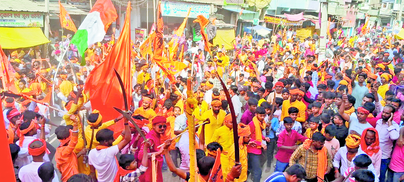 अमनौर. रविवार को अमनौर में रामनवमी के अवसर पर रामभक्तों ने भक्ति और शक्ति का अनोखा संगम दिखाया. सुबह से ही विभिन्न हिंदू संगठनों और बजरंग दल के सैकड़ों कार्यकर्ता बाइक पर सवार होकर अमनौर पहुंचे और बैंड बाजा के साथ हाथों में पारंपरिक शस्त्र और भगवा रंग के झंडे लिए जय श्री राम का नारा लगाते हुए भव्य बाइक रैली निकाली. यह रैली भेल्दी, सोनहो, गोसी अमनौर, परशुराम सहित दर्जनों गांवों का भ्रमण करते हुए अमनौर पहुंची. शोभायात्रा के दौरान कई आकर्षक झांकियां भी निकाली गयी. श्रद्धालुओं के लिए जगह-जगह शीतल पेय, खीर, शर्बत और फल की व्यवस्था की गयी थी. इस दौरान प्रशासन की ओर से विधि व्यवस्था बनाये रखने के लिए बीडीओ राजीव कुमार सिन्हा और पुलिस के कई जवान तैनात थे. विधायक कृष्ण कुमार उर्फ मंटु सिंह ने प्रभु राम के आदर्शों पर प्रकाश डाला और सत्य व धर्म के मार्ग पर चलने की प्रेरणा दी.