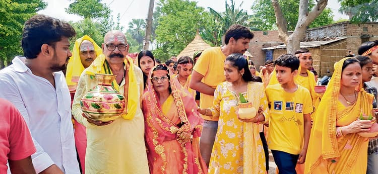 तरैया. प्रखंड के तरैया बाजार स्थित श्रीरामजानकी ठाकुरबाड़ी शिवमंदिर में नौ दिवसीय श्रीरुद्र महायज्ञ को लेकर मंगलवार को भव्य कलश सह शोभायात्रा निकली. मंदिर परिसर यज्ञस्थल से बैंड बाजे, भंगड़ा, हाथी घोड़े के साथ 1100 महिलाएं, युवतियां व श्रद्धालु हाथों में कलश लेकर कलशयात्रा में जय श्रीराम, हर-हर महादेव का नारा लगाते निकले. यज्ञस्थल का परिक्रमा कर श्रद्धालु कलशयात्रा को निकले जो तरैया बाजार होते हुए तरैया-मढ़ौरा एसएच 73 मुख्य मार्ग से शाहनेवाजपुर होकर टंगरिया बाबा के बगीचे में पहुंची. टंगरिया बाबा के बगीचे में स्थित कुएं से बनारस से आये विद्वानों व आचार्यो के वेद मंत्रों के साथ कलश में जलभरी की गयी. श्रद्धालु भक्त पुनः रामबाग श्रीसंकट मोचन घंटी बाबा दरबार होते हुए यज्ञस्थल पहुंचे. नौ दिवसीय श्रीरुद्र महायज्ञ के प्रथम दिन कलशयात्रा के साथ यज्ञ का अनुष्ठान प्रारंभ हुआ. मंदिर निर्माण व यज्ञ समिति के सदस्यों ने बताया कि श्रीरुद्र महायज्ञ के सातवें दिन 19 मई सोमवार को राजस्थान जयपुर से आये श्रीरामजी, माता सीता, लक्ष्मण जी, भगवान शंकर-पार्वती, हनुमान, राधा – कृष्ण, विश्वकर्मा जी, लक्ष्मी-नारायण समेत अन्य देवी-देवताओं की प्रतिमाओं में प्राणप्रतिष्ठा की जायेगी. जिसमें अधिक के अधिक संख्या में श्रद्धालुओं को भाग लेने की अपील की गयी.