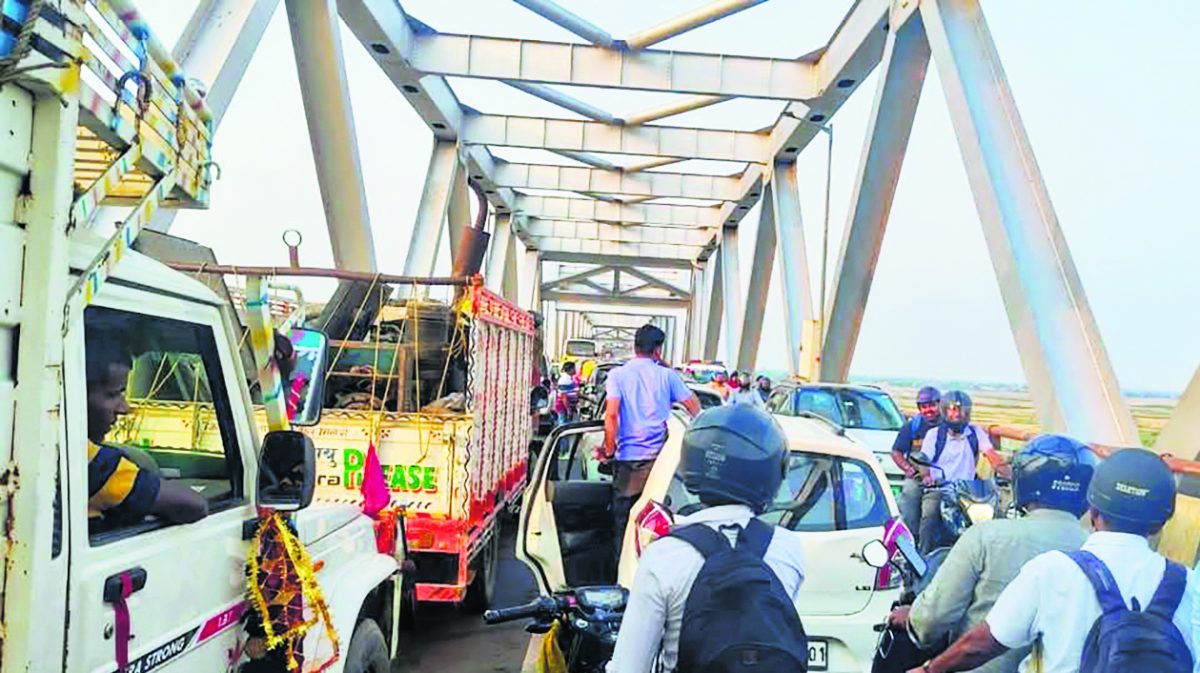 Saran News : जेपी सेतु पर जाम के कारण कई किलोमीटर तक फंसे रहे वाहन