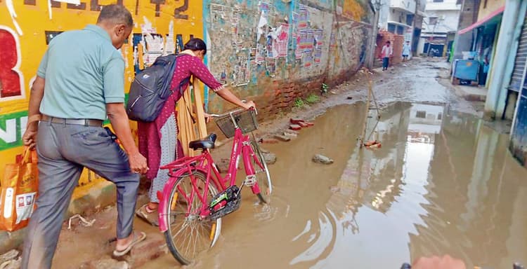 छपरा. शहर के मेवा लाल चौक से मौना चौक के बीच के दर्जनों मुहल्लों में जलजमाव और जर्जर सड़कों की समस्या ने आम लोगों की जिंदगी मुश्किल में डाल दी है. हाल ही में हुई बारिश के बाद इन इलाकों की गलियों में पानी भर गया है, जिससे आवागमन बेहद जोखिम भरा हो गया है. कई जगह नालियों के स्लैब टूटे हुये हैं, जिनसे गड्ढों में गिरने का खतरा बना हुआ है. स्थानीय लोगों ने दुर्घटनाओं से बचाव के लिए टूटी सड़कों और खुले गड्ढों के आसपास लकड़ी और बांस से चेतावनी चिह्न लगा दिये हैं, लेकिन वैकल्पिक रास्ता न होने के कारण लोग मजबूरी में इन्हीं खतरनाक रास्तों से आ-जा रहे हैं. दिन में तो जैसे-तैसे आवाजाही हो जाती है, लेकिन रात के समय स्ट्रीट लाइट खराब होने की वजह से अंधेरे में राह चलना जान जोखिम में डालने जैसा है.