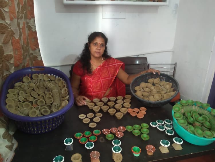 घर पर बैठकर ही प्रतिदिन 400 के आसपास दिए को बना लेते हैं. जिसकी मजदूरी के रूप में 400 से 500 भी मिल जाते है. सरकार से मांग करते हुए कहा कि हम लोगों को बाहर से मटेरियल लाने पर अधिक खर्चा पड़ता है. अगर अपने राज्य में ही कच्चा माल मिल जाय तो लागत में कमी आयेगी.