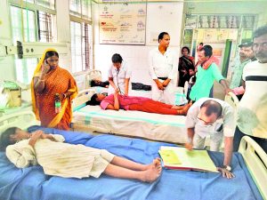 डेहरी नगर. गंगौली पंचायत स्थित गंगौली मध्य विद्यालय में शुक्रवार को कक्षा में परीक्षा दे रही एक के बाद 11 छात्राओं की अचानक तबीयत खराब होने लगी. छात्राएं रोने-चिल्लाने लगीं. बेहोश होने लगीं. इससे विद्यालय में अफरातफरी का माहौल हो गया. छात्राओं की स्थिति को देखते हुए अनुमंडल अस्पताल लाया गया, जहां इलाज चल रहा है. छात्राओं की तबीयत कैसे खराब हुई, इसका कारण का पता नही चल रहा है. अनुमंडल अस्पताल में इलाजरत छात्राओं में गंगौली गांव की रहने वाली 16 वर्षीया गुड़िया कुमारी, 14 वर्षीया गुड़िया कुमारी, 15 वर्षीया बंधन कुमारी, 13 वर्षीया ममता कुमारी, 13 वर्षीया शिवानी कुमारी, 15 वर्षीया प्रीति कुमारी, 14 वर्षीया प्रिया कुमारी, मथुरी गांव की रहने वाली 14 वर्षीया अनीता कुमारी, 11 वर्षीया नंदनी कुमारी, 12 वर्षीया संजना कुमारी, 13 वर्षीया सोनम कुमारी शामिल हैं. इमरजेंसी कक्ष में तैनात डॉ पंकज कुमार ने बताया कि भर्ती छात्राओं का इलाज किया जा रहा है. प्रधानाध्यापक उत्तम नारायण सिंह ने बताया कि शुक्रवार को द्वितीय पाली की विद्यालय में मासिक टेस्ट कर परीक्षा चल रही थी. इस दौरान एक कक्षा से छात्राओं के चिल्लाने व रोने की आवाज आने लगी. छात्राओं के अभिभावक को सूचित किया गया. छात्राओं कर तबीयत खराब होने की सूचना बीडीओ सहित अन्य पदाधिकारियों व स्वास्थ्य विभाग को दी गयी. इसके बाद एंबुलेंस के माध्यम से अनुमंडलीय अस्पताल लाया गया. वहां छात्राओं का इलाज चल रहा है.