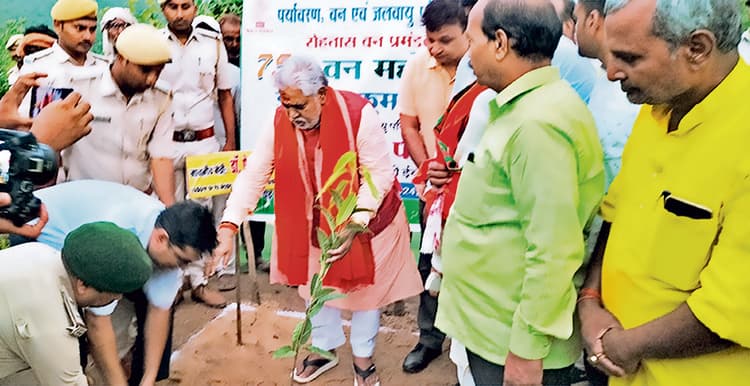 तिलौथू. पूरे बिहार में 4 करोड़ 10 लाख पौधे लगाये जायेंगे. हम लोग मॉनसून का इंतजार कर रहे थे. अब मॉनसून आ गया. हम लोग बहुत दिनों से मॉनसून का इंतजार कर रहे थे. इस बार गर्मी बहुत पड़ी. इतनी गर्मी हुई कि जनजीवन अस्त-व्यस्त हो गया. मॉनसून के आने के बाद नदी, पहाड़ और जंगलों के किनारे पौधारोपण किया जायेगा. पूरे बिहार में सीड बॉल के द्वारा हम लोगों ने पौधारोपण का लक्ष्य रखा है. इसे इस वर्ष पूरा कर लिया जायेगा. इसकी शुरुआत एक जुलाई को लोकतंत्र की धरती वैशाली से की गयी है. दो जुलाई को गोपालगंज में 75वें वन महोत्सव कार्यक्रम के तहत बड़े पैमाने पर पौधारोपण किया गया है. ये बातें बिहार के वन एवं पर्यावरण मंत्री प्रेम कुमार ने मां तुतला भवानी धाम में 75वें वन महोत्सव के अवसर पर कहीं. इस दौरान उन्होंने कई योजनाओं का लोकार्पण भी किया. मंत्री ने कहा कि बिहार में मात्र 60% ही जंगल बचा था, लेकिन मुख्यमंत्री नीतीश कुमार की पहल पर जंगल को बढ़ावा देने और पेड़ लगाने का अभियान चलाया गया है. इससे जंगल क्षेत्र में इजाफा हो रहा है. इसका शत प्रतिशत पूरा कर किया जायेगा. इसमें हमारे सभी वन अधिकारियों, फॉरेस्टर, डीएफओ, रेंजर, वनरक्षी, किसान, मजदूर, जीविका दीदियां आदि लोगों का सहयोग है. वहीं, प्रधानमंत्री नरेंद्र मोदी ने यह संदेश दिया कि एक पेड़ मां के नाम, इस संदेश को पूरे भारत में अमल किया जा रहा है. हर नागरिक का कर्तव्य बन गया है कि वह एक पेड़ जरूर लगाये. जितना ज्यादा हम पेड़ लगा सके. आप लोग देखे होंगे कि इस बार कहीं-कहीं तापमान 48 डिग्री और कहीं 50 डिग्री भी हो गया. इसे समझा सकता है कि अब स्थिति क्या होगी और असामयिक मॉनसून का आना और जरूरत से ज्यादा गर्मी पड़ना व जलवायु में परिवर्तन यह चिंता का विषय हो गया है. विभाग पेड़ लगाने के प्रति कटिबद्ध है. सोशल मीडिया में अच्छे कार्य करने वाले और वन एवं पर्यावरण और पौधारोपण के लिए अच्छा संदेश देने वाले यूट्यूब पर अभिषेक कुमार एवं सृष्टि राजपूत को औषधीय पौधा देकर मंत्री ने सम्मानित किया. मां तुतला भवानी धाम को पर्यटन के रूप में विकसित किया जायेगा. हम ग्रीन बिहार बनायेंगे. इस मौके पर डीएफओ मनीष कुमार वर्मा, पूर्व मंत्री मुरारी प्रसाद गौतम, भाजपा के जिला अध्यक्ष सुशील कुमार, शशि भूषण प्रसाद, महेंद्र ओझा, वन परिसर पदाधिकारी अमित कुमार आदि मौजूद थे.