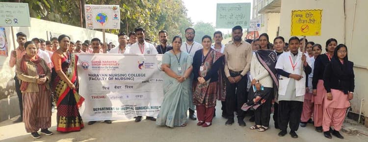 177 छात्र-छात्राओं ने लिया भाग नारायण नर्सिंग कॉलेज के छात्राओं ने कैंसर की रोकथाम का दिया संदेश फोटो-1- जागरूकता रैली निकालते नारायण नर्सिंग कॉलेज के स्टूडेंट व अन्य. प्रतिनिधि, सासाराम ऑफिस गोपाल नारायण सिंह विश्वविद्यालय के तहत संचालित नारायण नर्सिंग कॉलेज, जमुहार के तत्वावधान में विश्व कैंसर दिवस उत्साह और सामुदायिक स्वास्थ्य जागरूकता के संकल्प के साथ मनाया गया. कार्यक्रम का आयोजन डीन-कम-प्रिंसिपल डॉ के. लता और वाइस प्रिंसिपल डॉ श्वेता के मार्गदर्शन में हुआ. एमएसएन विभाग की अध्यक्ष डॉ पी पोन्नरासी ने कार्यक्रम का समन्वय करते हुए समग्र पर्यवेक्षण और नेतृत्व प्रदान किया. कार्यक्रम का उद्देश्य समुदाय को कैंसर की रोकथाम, शुरुआती पहचान, स्वस्थ जीवन शैली और समय पर चिकित्सकीय परामर्श के महत्व के प्रति जागरूक करना था. इसी क्रम में जमुहार गांव में कैंसर रोकथाम पर आधारित जागरूकता रैली निकाली गयी. रैली में छात्र-छात्राओं ने कैंसर जागरूकता, तंबाकू छोड़ने, संतुलित आहार, नियमित शारीरिक गतिविधि और स्वास्थ्य जांच से जुड़े संदेशों वाले प्लेकार्ड, पोस्टर व बैनर के साथ भाग लिया. इस दौरान सामाजिक कलंक को कम करने और स्वस्थ व्यवहार अपनाने के लिए प्रेरक नारे लगाये गये. कार्यक्रम में बीएससी नर्सिंग के 89 और जीएनएम के 88, कुल 177 छात्र-छात्राओं ने सक्रिय सहभागिता निभायी. आयोजन में आर. श्रीनिवासन, विक्रांत कुमार, शिवांशू कुमार, ममता कुमारी और मोनिका फिलिप्स की महत्वपूर्ण भूमिका रही, जिन्होंने गतिविधियों की योजनाबद्ध और सुचारू व्यवस्था सुनिश्चित की.