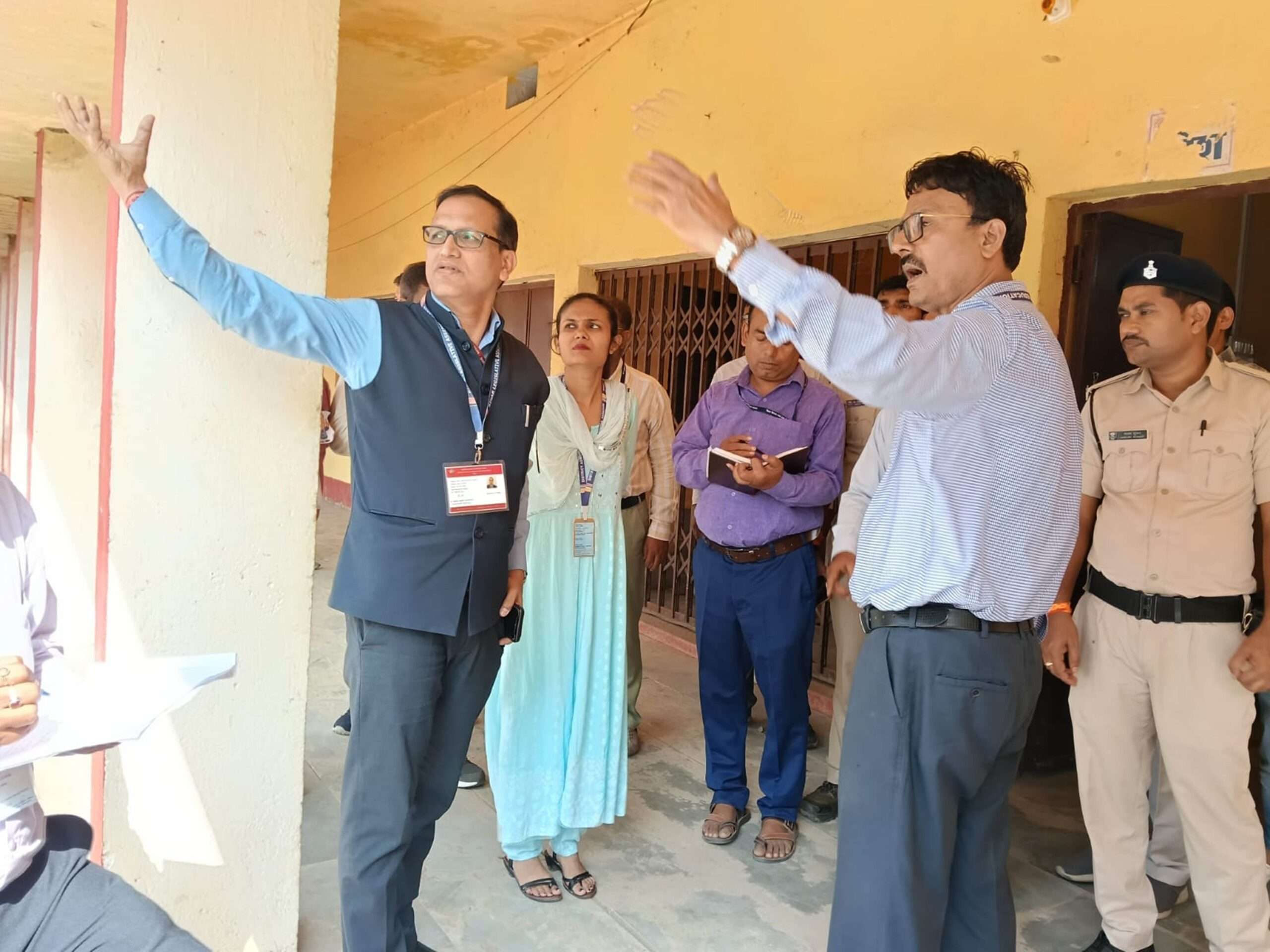 फोटो-4- एक बूथ पर निरीक्षण के दौरान दिशा-निर्देश देते प्रेक्षक. सासाराम ऑफिस. नोखा विधानसभा क्षेत्र में गुरुवार को प्रेक्षक मिलिंद धर्मराव रामटेके ने विभिन्न मतदान केंद्रों का निरीक्षण किया. उन्होंने बूथों पर उपलब्ध मूलभूत सुविधाओं जैसे पेयजल, शौचालय, रैंप, बिजली, महिला सहायता डेस्क आदि की स्थिति का जायजा लिया. उन्होंने मतदान कर्मियों से संवाद कर आवश्यक निर्देश दिया. मतदान दिवस पर सभी व्यवस्थाएं सुचारू रूप से सुनिश्चित की जाएं, ताकि मतदाताओं को किसी प्रकार की असुविधा न हो. प्रेक्षक ने सभी संवेदनशील और महत्वपूर्ण बूथों पर विशेष सतर्कता बरतने का निर्देश दिया. उन्होंने कहा कि निर्वाचन की प्रत्येक प्रक्रिया पारदर्शी व निष्पक्ष ढंग से संपन्न होनी चाहिए. प्रेक्षक ने जिलेवासियों से अपील की कि वे लोकतंत्र के इस महापर्व में अधिक से अधिक संख्या में भाग लें और 100 प्रतिशत मतदान सुनिश्चित कर अपनी जिम्मेदारी निभाएं.