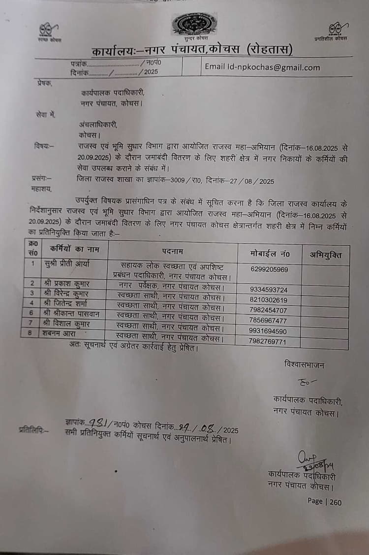 कोचस. नगर पंचायत में कार्यरत स्वच्छता साथियों की प्रतिनियुक्ति राजस्व महाभियान में कर दिया गया है. इससे नगर क्षेत्र में कूड़े-कचरे के रखरखाव के लिए चलाये जा रहे अभियान प्रभावित होने लगा है. बताया जाता है कि नगर विकास व आवास विभाग ने विशेष रूप से नगर निकाय क्षेत्रों में शहर को कचरा मुक्त बनाने के लिए लोगों को जागरूक करना व उन्हें उतरदायी बनाना, नागरिकों की भूमिका पर उन्हें जागरूक करना, नागरिकों को स्वच्छ परिवेश के लाभों के प्रति सचेत करना, कचरा मुक्त शहर बनाने के लिए वांछित व्यवहार अपनाने हेतु प्रेरित करना आदि उद्देश्यों के साथ स्वच्छता साथियों को नियुक्त किया था. लेकिन, विभाग के सारे नियमों व शर्तों को दरकिनार कर नगर प्रशासन ने स्वच्छता साथियों की प्रतिनियुक्ति राजस्व महाभियान में कर दी. इसे लेकर शहर के विभिन्न चौक-चौराहों पर कौतूहल का माहौल बना हुआ है. जानकारी के अनुसार, जिला राजस्व शाखा ने कार्यालय ज्ञापांक 3009, 27 अगस्त के माध्यम से भूमि राजस्व विभाग की ओर से राजस्व महाभियान के दौरान नगर क्षेत्र में जमाबंदी वितरण के लिए नगर निकाय के कर्मियों की सेवा उपलब्ध कराने की मांग नगर इओ से की थी. इसमें सहायक लोक स्वच्छता पदाधिकारी प्रीति आर्या व नगर पर्यवेक्षक प्रकाश कुमार का नाम शामिल था. लेकिन, नगर प्रशासन ने मनमानी तरीके से नगर पंचायत में कार्यरत स्वच्छता साथियों विरेंद्र कुमार, जितेंद्र शर्मा, श्रीकांत पासवान, विशाल कुमार और शबनम आरा की प्रतिनियुक्ति राजस्व महाभियान में कर दी. जबकि, नियमानुसार स्वच्छता साथियों को स्वच्छता अभियान से अन्यत्र किसी भी क्षेत्र में प्रतिनियुक्त नहीं करना है. इस संबंध में सहायक लोक स्वच्छता पदाधिकारी प्रीति आर्या ने अनभिज्ञता जाहिर की है. वहीं, नगर इओ ओमप्रकाश सिंह ने कहा कि राजस्व महाभियान में स्वच्छता साथियों की प्रतिनियुक्ति नियमानुसार की गयी है. …..कूड़े-कचरे के रखरखाव के लिए चल रहे अभियान होने लगा प्रभावित