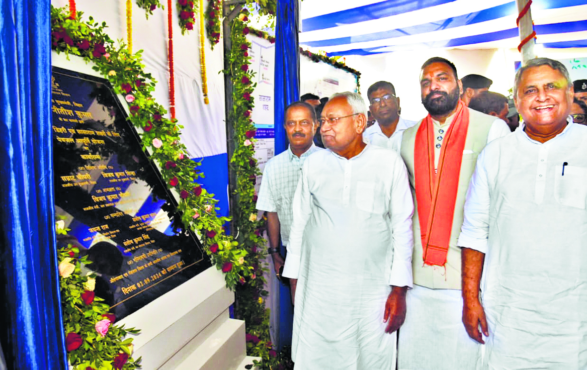 डेहरी/तिलौथू. मुख्यमंत्री नीतीश कुमार ने सोमवार की शाम करीब 4.20 बजे डेहरी के सोननदी के किनारे एनिकट में 1347.32 करोड़ रुपये की प्राक्कलित राशि की औरंगाबाद डेहरी सासाराम पेयजल आपूर्ति योजना का शिलान्यास किया. हालांकि सीएम ने इस अवसर पर कुछ कहा नहीं, लेकिन एनिकट शिलान्यास स्थल के आसपास निरीक्षण कर यह जता दिया कि यह योजना इन तीनों शहरों के वासियों के लिए बहुत ही महत्वपूर्ण है. इस योजना के तैयार होने पर करीब 6 लाख की आबादी को सोन को मीठा पानी पीने को मिलेगा. शिलान्यास स्थल पर जदयू नेता और कार्यकर्ताओं ने सीएम का स्वागत किया. साथ आये उपमुख्यमंत्री सम्राट चौधरी, मंत्री विजय कुमार चैधरी, जमा खां आदि नेताओं का भी स्वागत किया.