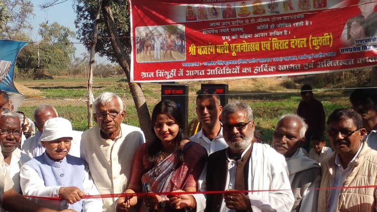 सासाराम के सिंगुही गांव में बिहार, दिल्ली व यूपी के पहलवानों के बीच हुआ मुकाबला फोटो-5- दंगल प्रतियोगिता का उद्घाटन करतीं मेयर काजल कुमारी व अन्य. प्रतिनिधि, सासाराम सदर महाशिवरात्रि के शुभ अवसर पर सासाराम नगर निगम क्षेत्र के वार्ड 35 स्थित सिंगुही गांव में सूर्य मंदिर गौतम बुद्ध स्थान के पास सोमवार को विराट कुश्ती दंगल प्रतियोगिता आयोजित हुई. कार्यक्रम का उद्घाटन सासाराम की मेयर काजल कुमारी ने फीता काटकर किया. दंगल में बिहार, उत्तर प्रदेश व दिल्ली के नामी पहलवानों ने अपने-अपने दांव आजमाये. पहलवानों के हर दांव पर दर्शक दीर्घा तालियों की गड़गड़ाहट से गूंजती रही. अखाड़ा समिति के अध्यक्ष सह जिलास्तरीय पहलवान राम प्रवेश सिंह कुशवाहा, सचिव सुधीर मेहता और समाजसेवी सत्यनारायण स्वामी ने संयुक्त रूप से दंगल का संचालन किया. प्रतियोगिता में जिले के अलावा सीमावर्ती जिलों और विभिन्न गांवों से बड़ी संख्या में पहलवान पहुंचे थे. दंगल में सत्येंद्र पहलवान, अभिषेक पहलवान, मोहन पहलवान और सर्वजीत पहलवान सहित कई प्रतिभागियों ने हिस्सा लिया. समिति के अध्यक्ष ने प्रतिभागियों को अंगवस्त्र, मेडल, गुलदस्ता और नगद राशि देकर सम्मानित किया. आयोजन समिति के अनुसार यह दंगल प्रतियोगिता वर्ष 1996 से लगातार आयोजित की जा रही है और क्षेत्र में खेल तथा पारंपरिक कुश्ती को बढ़ावा देने में महत्वपूर्ण भूमिका निभा रही है. कुश्ती प्रतियोगिता में यूपी के धर्मेंद्र और जलालपुर के पप्पू पहलवान विजेता घोषित हुए. उन्हें पांच हजार रुपये के नगद पुरस्कार से सम्मानित किया गया. मौके पर सीनियर सिटीजन एसोसिएशन के राष्ट्रीय महासचिव रामायण पांडेय एलॉन, बिहार प्रांत यादव महासभा के अध्यक्ष सुग्रीव प्रसाद सिंह, सचिव योगेंद्र प्रसाद सिंह, जगरोपन सिंह, कामेश्वर सिंह, ललन दुबे, उपेंद्र मिश्र, उदय पाल, अशोक कुमार सिंह आजाद, रवि वचन ओझा, धर्मेंद्र कुशवाहा, राम नरेश, अतुल प्रसाद, अनिल सिंह, मुखिया ओमप्रकाश, डॉ सचिन कुमार सिंह, विजय महतो, डॉ अमित कुमार सिंह, प्रताप सिंह यादव, संतोष कुशवाहा, अरविंद सिंह और अशोक सिंह सहित कई गणमान्य लोग उपस्थित थे.