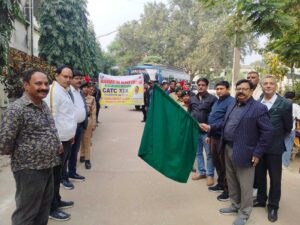 फोटो-8- हरी झंडी दिखाते प्राचार्य.