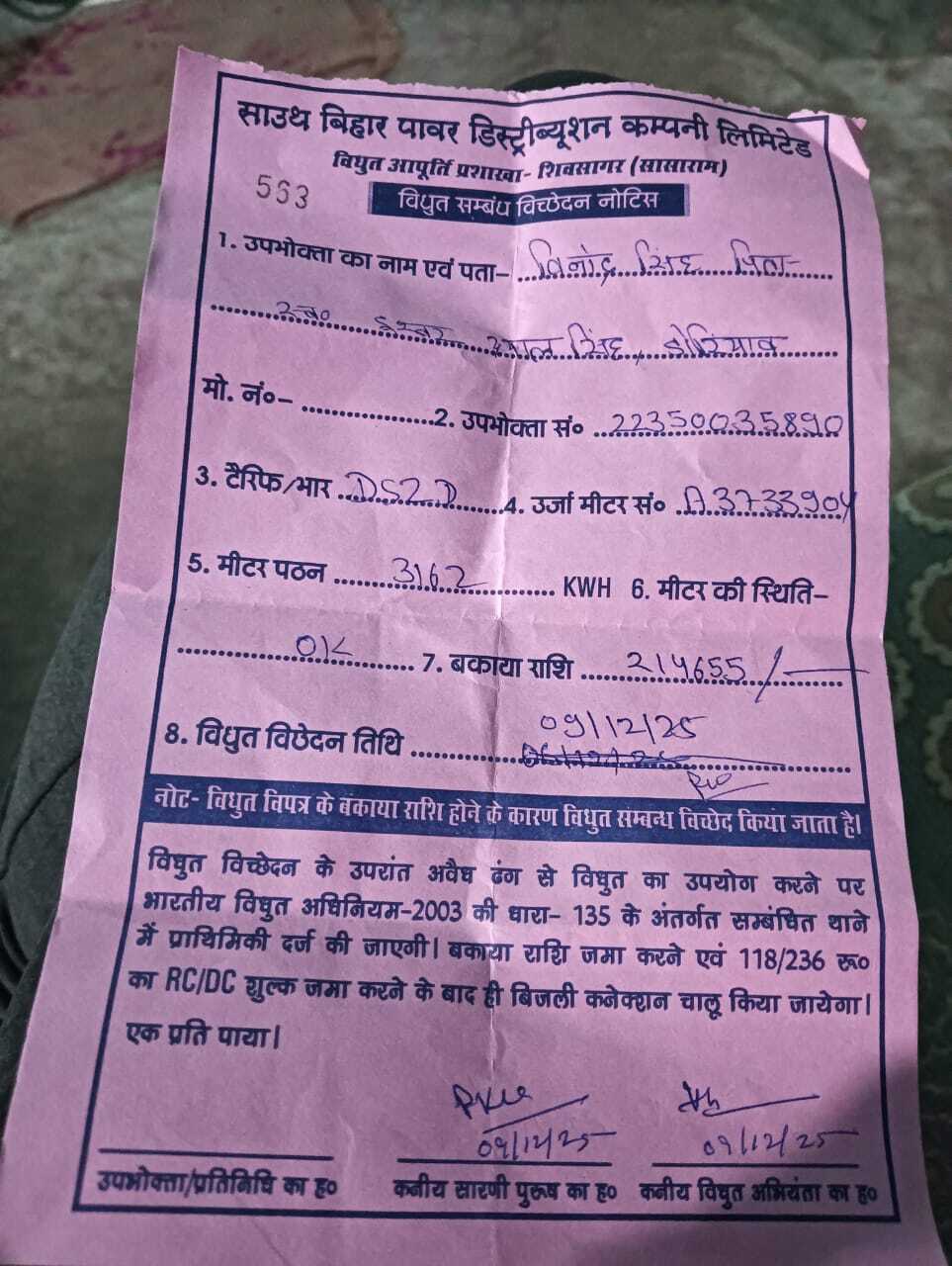 जेइ ने कनेक्शन काटने का थमाया नोटिस, उपभोक्ता जेइ से लेकर एसडीओ कार्यालय का काट रहा चक्कर