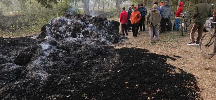 सिकरियां पंचायत के बसडीहां गांव के चार किसानों के धान का बोझा जलकर राख हो गया. घटना बीती रविवार की रात का बताया जाता है. बसडीहां गांव के चार किसान कृष्णा सिंह, हरेंद्र सिंह, पारस सिंह, राजेश सिंह है. किसानों ने बताया कि दो बीघा कतरनी धान का बोझा बसडीहां पुल से पास गांज कर रखा गया था. बीती रात पूरा बोझा जलकर राख हो गया. सुबह में जानकारी मिली कि सभी धान का बोझा जलकर राख हो गया है. पहुंचकर देखा, तो पूरा धान जला हुआ है आग कैसे लगी इसकी कोई जानकारी नहीं है. धान जलने की सूचना थानाध्यक्ष विवेक कुमार व सीओ को दिया गया है. बिहार सरकार से जले धान की मुआवजे की मांग की गयी है. पूर्व बीडीसी रमेश सिंह ने बताया कि थानाध्यक्ष पुलिस बल के साथ घटनास्थल पर आये थे. लिखित सूचना थाना व सीओ को दिया गया.डिस्क्लेमर: यह प्रभात खबर समाचार पत्र की ऑटोमेटेड न्यूज फीड है. इसे प्रभात खबर डॉट कॉम की टीम ने संपादित नहीं किया है