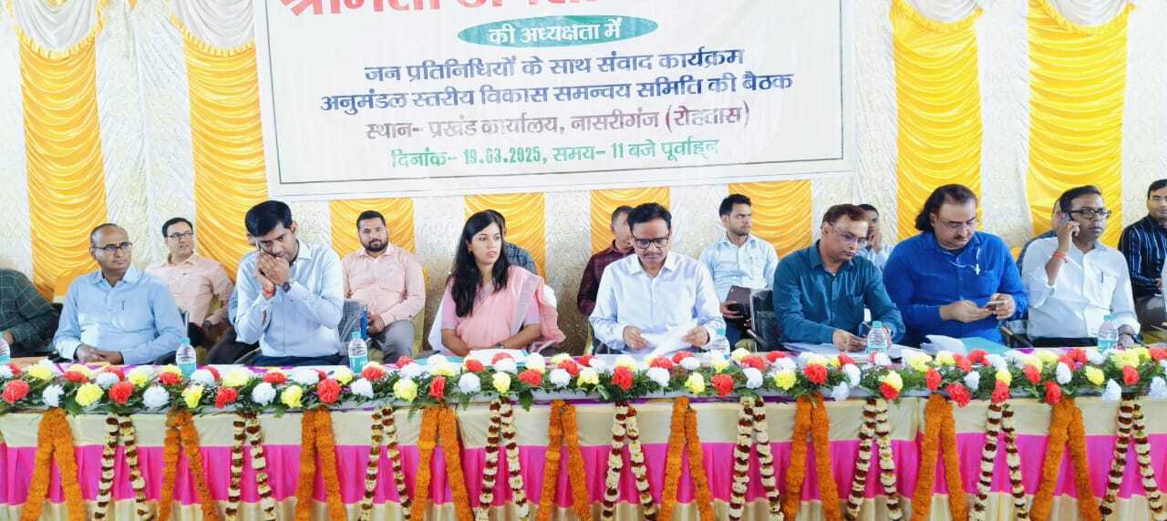 नासरीगंज. प्रखंड मुख्यालय में डीएम उदिता सिंह ने बुधवार को प्रखंड के जनप्रतिनिधियों के साथ संवाद किया. इसके साथ ही बिक्रमगंज अनुमंडल स्तरीय विकास समन्वय समिति की समीक्षा की. जनप्रतिनिधियों ने डीएम को बुके, गुलदस्ता व अंग-वस्त्र से सम्मानित किया. कार्यक्रम में डीएम ने कहा कि सभी पंचायत भवनों में आरटीपीएस कार्यालय संचालित होंगे. जनकल्याणकारी योजनाओं का निष्पादन होगा. इस कार्य में लापरवाही या अनुपस्थित आरटीपीएस कर्मी का वेतन काटने के साथ विभागीय कार्रवाई की जायेगी. गर्मी का मौसम के मद्देनजर नल-जल रिपेयर की चार टीम प्रखंडों में घूम रही हैं. इसमें जन प्रतिनिधि सहयोग करें. आवास सर्वे में धन उगाही करने वालों पर होगी कार्रवाई : डीएम ने कहा कि सबके लिए आवास योजना का सर्वे किया जा रहा है. उन्होंने कहा कि शिकायत मिली है कि आवास सर्वे करने वाले लाभुकों से धन उगाही कर रहे हैं. जांच में पकड़े जाने पर उनके विरुद्ध कठोर कार्रवाई होगी. बहुत जल्द सभी पंचायतों में पंचायत सरकार भवन का निर्माण कार्य शुरू किया जायेगा. उक्त जन प्रतिनिधि संवाद में प्रमुख योगेश कुमार ने पंचायतों में नल-जल की समस्या के समाधान, तो परसिया मुखिया अनिता देवी ने पंचायती राज की ओर और अधिक राशि उपलब्ध कराने की मांग की. धनाव की मुखिया अफसाना खातून व कैथी की मुखिया सावित्री देवी ने कबीर अंत्येष्टि योजना की राशि उपलब्ध कराने की मांग की. पडूरी की मुखिया रीता देवी ने आरा कैनाल नहर पर बने पुल तक रास्ता निर्माण कराने, पवनी के मुखिया बादशाह तिवारी ने जनप्रतिनिधियों की सुरक्षा, इटिमहा की मुखिया शशि कुमार ने प्रतिनिधियों की लंबित भत्ता का भुगतान समय से व प्रत्येक माह देने, मंगराव के मुखिया वकील यादव ने राधा कृष्ण उच्च विद्यालय मंगराव में शिक्षकों के आपसी मतभेद से पठन पाठन के बाधित होने की शिकायत की. डिहरी की मुखिया कृष्णा प्रसाद ने स्वास्थ्य उपकेंद्र के सुचारू रूप से संचालन नहीं होने की शिकायत की, तो नगर पंचायत की मुख्य पार्षद शबनम आरा ने एनओसी नहीं मिलने के कारण नगर के विकास में बाधा आने की बात कही. उप मुख्य पार्षद कलावती देवी ने कन्या मध्य विद्यालय में शिक्षकों की कमी को दूर करने की, बीडीसी धर्मेंद्र यादव ने सर्प दंश से मृत लोगों को 2013 से मुआवजा नहीं मिलने की शिकायत की. डीएम ने समस्या का समाधान जल्द करने का आश्वासन दिया. स्टॉलों का किया निरीक्षण, बांटे पर्चे : डीएम ने विभिन्न विभागों के 27 स्टॉलों का निरीक्षण किया और 11 लोगों को बंदोबस्ती पर्चा दिया. इसमें जीना की सुमन देवी, सुनीता कुमारी, शंकरपुर के विकास कुमार, चंद्रशेखर राम, ओम प्रकाश राम, बुचन देवी, सतेंद्र राम, अस्तुरना देवी व अमियावर की सुनीता देवी, रेशमी देवी तथा पुनम कुमारी 
