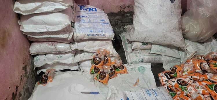 दिनारा. शहर के एनएच-319 किनारे स्थित अप्पू कुमार के मकान में नकली टाटा नमक और हार्पिक टॉयलेट क्लीनर की अवैध फैक्ट्री का भंडाफोड़ मंगलवार की सुबह पुलिस ने किया. पुलिस ने छापेमारी के दौरान नकली सामान बना रहीं दो महिलाओं को गिरफ्तार किया. वहीं, अवैध फैक्ट्री से 18 बोरी ताजा नमक, पांच सौ पीस नकली टाटा नमक का पैकेट, पैकिंग मशीन, भारी मात्रा में नकली रैपर, हार्पिक कंपनी के 500 पीस नकली टॉयलेट क्लीनर की खाली बोतलें, 3395 स्टीकर व भारी मात्रा में लिक्विड मटेरियल जब्त किया है. नकली नमक का बाजार मूल्य करीब 54 हजार रुपये आंका गया है. इस संबंध में थानाध्यक्ष विनय कुमार ने बताया कि दिल्ली के लक्ष्मी नगर थाना क्षेत्र के शंकरपुर के निवासी हरि किशोर पंडित के पुत्र अजय पंडित और मुम्बई के पतेहार रोड, जाला सोपरा निवासी सुधीर झा के पुत्र शीतल झा की शिकायत पर शहर के एनएच-319 किनारे स्थित अप्पू कुमार, पिता रविंद्र सिंह के मकान में छापेमारी की गयी. जहां नकली टाटा नमक व नकली हार्पिक टॉयलेट क्लीनर बनाने का काम चल रहा था. अवैध फैक्ट्री में काम कर रही दो महिला नासरीगंज थाना क्षेत्र के अमियावर गांव निवासी पंकज सिंह की पत्नी आनंदी कुमारी और दिनारा थाना क्षेत्र के पड़रिया गांव निवासी ददन सिंह की पत्नी सीमा देवी को गिरफ्तार किया गया है. इसके साथ ही पैकिंग मशीन के साथ नकली नमक के पैकेट, भारी मात्रा में खाली बोतलें, रैपर आदि जब्त की गयी हैं. उन्होंने बताया कि उक्त अवैध फैक्ट्री का संचालक उत्तर प्रदेश के गोरखपुर निवासी परशुराम चौरसिया के पुत्र रवि चौरसिया की गिरफ्तारी के लिए छापेमारी की जा रही है. कांड में दो प्राथमिकी दर्ज थानाध्यक्ष ने बताया कि इस कांड की दो प्राथमिकी दर्ज की गयी है. एक मुम्बई के पतेहार रोड, जाला सोपरा निवासी सुधीर झा के पुत्र शीतल झा और दूसरा दिल्ली के लक्ष्मी नगर थाना क्षेत्र के शंकरपुर के निवासी हरि किशोर पंडित के पुत्र अजय पंडित ने दर्ज करायी है. इधर, टाटा नमक व हार्पिक कंपनी के सेल्स मैनेजर द्वय ने बताया कि हाल के दिनों में दिनारा क्षेत्र में कंपनी के प्रोडक्ट का सेल कम होने पर इसकी जांच शुरू की गयी. जांच में कई दुकानों पर नकली सामग्री की बिक्री होते पाया गया. हम 15 दिनों से इस पर नजर बनाये हुए थे. अब जाकर अवैध फैक्ट्री का पता चला. तो, पुलिस के साथ कार्रवाई में भंडाफोड़ हुआ है.