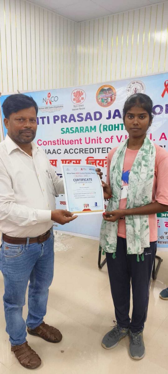 SASARAM NEWS.रेड रिबन क्लब रेड रन के तहत आयोजित जिला स्तरीय पांच किलोमीटर की दौड़ प्रतियोगिता में अवधूत भगवान राम कॉलेज की छात्रा सिमरन कुमारी ने पहला स्थान हासिल कर कॉलेज का नाम रोशन किया.