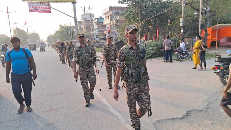 संवेदनशील इलाकों में बढ़ी निगरानी, पुलिस ने लोगों से अफवाहों से दूर रहने की अपील की. फोटो-11- फ्लैग मार्च में शामिल पुलिस के जवान सासाराम ग्रामीण. बिहार विधानसभा चुनाव को शांतिपूर्ण तरीके से संपन्न कराने के उद्देश्य से सासाराम शहर के विभिन्न क्षेत्रों में शनिवार को फ्लैग मार्च निकाला गया. इस दौरान पुलिस और अर्धसैनिक बलों की भारी उपस्थिति रही. क्षेत्र में कानून-व्यवस्था को लेकर पुलिस प्रशासन पूरी तरह अलर्ट मोड में दिखा. शहर के बेदा, गीता घाट कॉलोनी, बैंक कॉलोनी सहित आसपास के ग्रामीण इलाकों को फ्लैग मार्च के दौरान कवर किया गया. लोगों ने अपने-अपने घरों से बाहर निकलकर पुलिस बल की मौजूदगी को देखा और सुरक्षा व्यवस्था पर संतोष व्यक्त किया. सदर एसडीपीओ-1 दिलीप कुमार ने बताया कि शांतिपूर्ण एवं निष्पक्ष चुनाव सुनिश्चित करने के लिए यह फ्लैग मार्च किया गया है. उन्होंने कहा कि कानून-व्यवस्था को कड़ा बनाये रखना प्रशासन की पहली प्राथमिकता है. किसी भी तरह की अव्यवस्था या असामाजिक गतिविधि बर्दाश्त नहीं की जायेगी. पुलिस ने गांवों में लोगों से संवाद स्थापित किया और उन्हें चुनाव के दौरान किसी भी अफवाह या दबाव में न आने की अपील की. साथ ही मतदान के दिन डरमुक्त वातावरण तैयार करने का भरोसा दिलाया गया. फ्लैग मार्च में बिहार पुलिस, अर्धसैनिक बल और स्थानीय पुलिसकर्मियों ने मार्ग में आने वाले संवेदनशील इलाकों को चिह्नित किया और चौक-चौराहों पर निगरानी बढ़ाने के निर्देश दिये. पुलिस प्रशासन ने स्पष्ट किया कि अवैध शराब, हथियार और नकदी के वितरण पर विशेष निगरानी रखी जायेगी. चुनाव आचार संहिता के उल्लंघन पर तुरंत कार्रवाई की जायेगी. पुलिस ने संदेश दिया कि शांतिपूर्ण मतदान में सभी की भागीदारी महत्वपूर्ण है. किसी भी संदिग्ध गतिविधि की तुरंत सूचना दें.