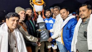 रामरूप खेल स्टेडियम में खेला गया फुटबॉल मैच आखिरी दस मिनट में रोहित कुमार का निर्णायक गोल फोटो -4- विजेता टीम को कप प्रदान करते उपमुख्य पार्षद रवीश रंजन व अन्य. प्रतिनिधी, काराकाट – प्रखंड मुख्यालय के पास नगर पंचायत गोड़ारी स्थित रामरूप खेल स्टेडियम में एक दिवसीय फुटबॉल मैच का आयोजन किया गया. नगर पंचायत उपमुख्य पार्षद रवीश रंजन के सौजन्य से वर्ष 2025 के अंतिम चरण की विदाई और सड़क सुरक्षा व साइबर क्राइम नियंत्रण को लेकर जागरूकता अभियान के उद्देश्य से यह मैच आयोजित हुआ. मैच की शुरुआत में पूर्व एपीएस स्कूल बुढ़वल के बच्चों के साथ उपमुख्य पार्षद रवीश रंजन, आमंत्रित अतिथि और दोनों टीमों के खिलाड़ी कतारबद्ध होकर खेल मैदान में पहुंचे. मैदान में मौजूद दर्शकों ने सम्मानपूर्वक खड़े होकर राष्ट्रगान गाया. इसके बाद मुख्य पार्षद ने फुटबॉल को किक मारकर मैच का शुभारंभ किया. मैच का निर्धारित समय 90 मिनट का रहा, जिसमें 10 मिनट का मध्यांतर शामिल था. मध्यांतर से पहले दोनों टीमों ने गोल करने के लिए लगातार प्रयास किये, लेकिन दोनों ओर के गोल रक्षकों के बेहतरीन प्रदर्शन के कारण कोई टीम बढ़त नहीं बना सकी. मध्यांतर के बाद मुकाबला और भी रोमांचक हो गया. झारखंड की टीम की ओर से अंतिम दस मिनट में स्टॉपर खिलाड़ी रोहित कुमार ने शानदार गोल दागकर टीम को 1-0 की बढ़त दिलायी और जीत सुनिश्चित कर दी. इसके बाद पश्चिम बंगाल की टीम ने बराबरी के लिए भरपूर प्रयास किया, लेकिन सफलता नहीं मिल सकी. झारखंड की टीम के गोल रक्षक के सशक्त प्रदर्शन और बेस्ट खिलाड़ी अमित बौरी की सतर्कता ने टीम को जीत दिलाने में अहम भूमिका निभायी. वहीं पश्चिम बंगाल टीम के कप्तान बोलो खान के साथ विदेशी खिलाड़ी जोसेफ लियो, हीरो और शेख के खेल ने दर्शकों को रोमांचित किया. झारखंड की ओर से ब्राइट, गोमो और जोसेफ सहित विदेशी व राज्य स्तरीय खिलाड़ियों ने आकर्षक खेल का प्रदर्शन किया. विदेशी खिलाड़ियों को देखने के लिए बड़ी संख्या में दर्शक पहुंचे और मैच का भरपूर आनंद लिया. निर्णायक की भूमिका मिंटू साह ने निभायी, जबकि क्षेत्र रक्षक अखिलेश कुमार रहे. अमन सिंह व सहयोगी सुरेंद्र सिंह की जोरदार कमेंट्री को दर्शकों ने खूब सराहा. विजेता टीम के कप्तान मो इकबाल, उपकप्तान सोनू और अन्य खिलाड़ियों को मुख्य पार्षद और जनप्रतिनिधियों ने विजेता कप प्रदान किया. मैच के सफल आयोजन में रवि कुमार, प्रभु पासवान, राज कुमार, विकास कुमार, संतोष पासवान, सुरेंद्र कुमार सहित मंचासीन राम प्रसन्न तिवारी उर्फ बबुआजी, सुनील प्रजापति, संजय प्रसाद, संतोष गुप्ता, प्रशांत प्रसाद, आलोक प्रसाद, विशाल सोनी (मैच कमेटी अध्यक्ष), विनोद चौधरी, शिक्षक अनिल पासवान सहित कई लोगों का योगदान रहा.