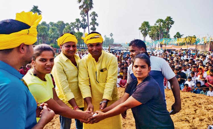 तिलौथू. तिलौथू प्रखंड क्षेत्र के भदसा गांव में शनिवार को गोवर्धन पूजा के अवसर पर भव्य दंगल प्रतियोगिता का आयोजन हुआ. दसमें यूपी व बिहार राज्य के विभिन्न जिलों से आये दर्जनों पहलवानों ने अपना दमखम दिखाया. इस प्रतियोगिता में पुरुष पहलवानों के अलावा महिला पहलवानों ने भी हिस्सा लिया, जिसमें पहलवानों के द्वारा पटकनी देने पर ही हार-जीत का फैसला हुआ. इसमें युवा पहलवानों का खासकर दबदबा देखा गया. महिला पहलवानों में कैमूर की सपना ने डुमरी की ब्यूटी पहलवान को तीन मिनट के निर्धारित समय के अंदर महज दो मिनट में ही पटकनी दे दी और विजेता पुरस्कार पर अपना कब्जा जमा लिया. लक्ष्मणपुर की निशा ने सिमरी की सुमन को पटकनी दी. वहीं, पुरुषों के दंगल में यूपी से आये वाराणसी के रंजन ने शैलेश को पटकनी दी. इसके अलावा दीपू बिछिया ने कर्मनाशा के शमशेर को शिकस्त दी. कैमूर के गोविंदा यादव ने यूपी के गाजीपुर के बलिराम को धूल चटायी. शमशेर व दीपू के साथ ही कई दर्जनों पहलवानों के बीच कुश्ती हुई. कुश्ती देखने के लिए हजारों की संख्या में दर्शक देर शाम तक डटे रहे. दर्शकों ने जी भरकर कुश्ती का लुत्फ उठाया. रेफरी की भूमिका में आशुतोष यादव, राजेश यादव, व उदय यादव थे, जबकि मंच का संचालन इंस्पेक्टर अनिल यादव ने किया. कार्यक्रम का उद्घाटन गोह विधान सभा के विधायक भीम यादव, सासाराम विधायक राजेश गुप्ता, पूर्व विधायक सत्यनारायण सिंह, समाजसेवी लालबाबू यादव, युवा समाजसेवी अजय यादव, तिलौथू हाउस परिवार के युवराज समाजसेवी मोहित सिन्हा ने संयुक्त रूप से किया. अलग-अलग राज्यों से पुरुष तथा महिला पहलवान कुश्ती में दांव पेच आजमाने के लिए पहुंचे हुए थे. इस दौरान दर्जनों पहलवानों ने अपने प्रतिद्वंदी पहलवानों को पटखनी दी. मौके पर कुश्ती कोच के अध्यक्ष अजय पहलवान, मुखिया संध के अध्यक्ष उमेश यादव, पूर्व मुखिया जगनारायण सिंह, डॉ बैजनाथ सिंह बटोही, योगेंद्र कुशवाहा, उपेंद्र यादव, पूजा समिति के अध्यक्ष राजू यादव, सुनील यादव, अविनाश यादव, विधायक प्रतिनिधि प्रभु यादव, छोटन यादव, अभिमन्यु यादव, यदुवंशी सेना के प्रखंड अध्यक्ष धीरेंद्र यादव, राजद के वरिष्ठ कार्यकर्ता सीताराम यादव आदि मौजूद थे.
