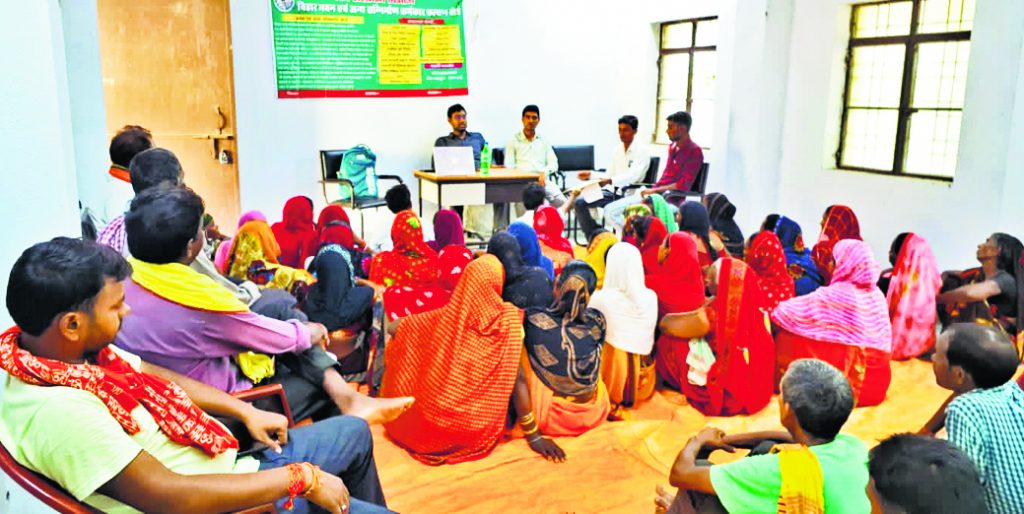 तिलौथू. प्रखंड के चितौली पंचायत सरकार भवन के सभागार में श्रम संसाधन विभाग के विशेष निर्देश पर श्रमिकों के बिहार भवन एवं अन्य सन्निर्माण कर्मकार कल्याण बोर्ड में निबंधन एवं बोर्ड द्वारा संचालित कल्याणकारी योजनाओं के प्रचार-प्रसार के लिए विशेष कैंप का आयोजन किया गया. कैंप में 186 श्रमिकों की उपस्थिति रही. इसमें ऑनलाइन निबंधन के 65 आवेदन, नवीनीकरण के 16, योजना से संबंधित 03 आवेदन प्राप्त हुए. इस दौरान चितौली पंचायत के वार्ड 11 के वार्ड सदस्य रवींद्र कुमार, वार्ड 12 के वार्ड सदस्य संतोष चौधरी, वार्ड 13 के वार्ड सदस्य धीरेंद्र कुमार ने अपने पंचायत सरकार भवन में आयोजित कैंप में उपस्थित श्रमिकों को कार्ड ऑनलाइन बनवाने को लेकर प्रेरित किया. इस अवसर पर उन्होंने श्रमिकों के हितार्थ बिहार सरकार के श्रम संसाधन विभाग द्वारा चलायी जा रही योजनाओं के लाभ और पंजीकरण संबंधित जानकारी प्राप्त की और श्रमिकों का निबंधन भी करवाया. साथ ही उन्होंने श्रमिकों को कहा कि आप लोग अपने बच्चों को बिहार कौशल विकास मिशन द्वारा संचालित कोर्स से अवगत कराएं, ताकि कोर्स करने के उपरांत वे स्वरोजगार भी प्राप्त कर सकें. श्रम प्रवर्तन पदाधिकारी गौतम कुमार ने श्रमिकों से सम्मानजनक जीविकोपार्जन के लिए सरकारी योजनाओं का लाभ उठाने का आग्रह किया. उन्होंने श्रमिकों को आश्वस्त किया कि विभाग आपके हितार्थ सभी स्तरों पर कार्य कार रहा है. इसमें आपकी प्रमुख भागीदारी भी नितांत आवश्यक है. साथ ही उन्होंने श्रम विभाग की तरफ से चलायी जा रही योजनाओं के बारे में विस्तारपूर्वक बताया. इस दौरान उन्होंने श्रमिकों के प्रश्नों का जवाब भी दिया. इसके अलावा श्रमिकों के अधिकारों के बारे में भी ग्रामीणों को अवगत कराया गया. श्रमिकों से संबंधित कानूनों के बारे में भी जानकारी दी गयी.