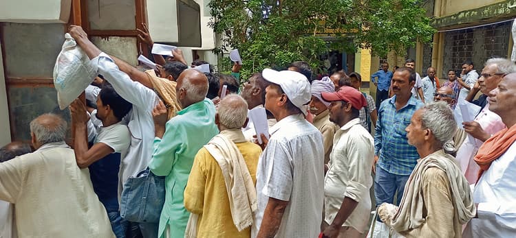 सासाराम सदर. पहले हमारा, तो एक ने कहा नहीं पहले हमार नंबर है, पहले आवेदन जमा करे द, तो दूसरा ने कहा ना हो सबसे पहले हम आइल रही, एह से पहले हम आवेदन जमा करम, पिछे लाइन में लग जा, ना त ठीक ना होई. तो उसने ना लागम, फिर क्या था, दो जनों के बीच पहले आवेदन जमा करने को लेकर नोक-झोंक शुरू हो गयी. काउंटर पर हंगामा व धक्का-मुक्की शुरू हो गया. इसी बीच काउंटर पर बेतरतीब ढंग से आवेदन जमा करने की होड़ लग गयी. कोई काउंटर के पीछे से आवेदन दे रहा, तो कोई बगल से तो कोई आगे से. कतार पूरी तरह खत्म भंग गयी. इसी बीच पहले आवेदन जमा करने की होड़ व धक्का मुक्की से काउंटर की खिड़की टूट गयी. यह हाल रहा जिला मुख्यालय के कलेक्ट्रेट परिसर स्थित जिला लेखागार कार्यालय का, जहां शुक्रवार को भूमि सर्वेक्षण में जरूरत पड़ने वाले दस्तावेजों लेकर लोगों की भीड़ उमड़ पड़ी. लोग पहले आवेदन जमा करने के लिए जिला लेखागार कार्यालय के बाहर कतार तोड़ कर हंगामा करने लगे. पहले आवेदन जमा करने की होड़ व बवाल करने के बीच कई लोगों को धक्का-मुक्की से हल्की चोटें भी आयीं. इसके बाद कलेक्ट्रेट में तैनात होमगार्ड के जवानों ने किसी तरह लोगों को समझाकर कतारबद्ध होकर आवेदन जमा करने का आग्रह किया, तब जाकर मामला शांत हुआ. गौरतलब है कि जिले में जमीन सर्वे की प्रक्रिया शुरू है. जिसका असर अब जिला मुख्यालय में भी देखने को मिलने लगा है. इन दिनों भूमि सर्वेक्षण में जरूरत पड़ने वाले दस्तावेजों को लेकर कलेक्ट्रेट परिसर स्थित जिला लेखागार कार्यालय के बाहर लोगों की जमकर भीड़ उमड़ रही है. कई दफा लोग कतार में लग कर आवेदन जमा कर रहे, तो कई दफा इतर-बितर व धक्का मुक्की कर हंगामा कर रहे हैं. विभाग के अनुसार, इन दिनों भूमि से संबंधित विभिन्न दस्तावेजों को निकालने को लेकर प्रतिदिन लगभग तीन से चार सौ से अधिक लोग कार्यालय पहुंच रहे हैं.