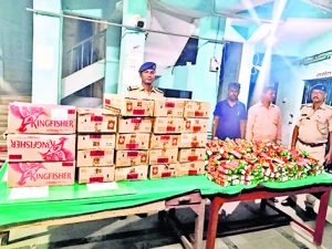 नासरीगंज. ना गांव से पुलिस ने 12 चक्का ट्रक से 303 लीटर शराब शुक्रवार को जब्त की. वहीं, इस कांड में शराब को ठिकाना लगाने के लिए स्कॉर्पियो से चल रहे चालक व एक लाइनर को गिरफ्तार किया है, जबकि दो भागने में सफल रहे. थानाध्यक्ष अमित कुमार ने बताया कि गुप्त सूचना पर मौना सड़क पर खड़े एक ट्रक की तलाशी ली गयी, जिसमें 330 लीटर शराब बरामद की गयी है. उन्होंने बताया कि ट्रक के पास चार लोग खड़े थे. ट्रक के समीप बीआर जीरो टू पीए 3538 स्कॉर्पियो खड़ी थी. पुलिस को देख सभी भागने लगे. खदेड़ कर दो लोगों को पकड़ा गया, जिसमें एक ट्रक चालक उतर प्रदेश के मऊ जिले के मोहम्मदाबाद थाना क्षेत्र के सुरहुपुर गांव के निवासी अरुण यादव व लाइनर स्कॉर्पियो चालक सासाराम मुफस्सिल थाना क्षेत्र के अमरा तालाब गांव निवासी राजू पाल है. कार्रवाई में एसआई सुनील कुमार, बैजनाथ कुमार, पीएसआइ सुबोध कुमार, शबनम कुमारी, रूपम कुमारी, पीटीसी अश्वनी कुमार, ड्राइवर नेसार अहमद, अंजय कुमार, पीएसआइ राहुल कुमार, एएसआइ विनोद कुमार, पुलिस कर्मी सुजीत कुमार, अर्चना कुमाथाना क्षेत्र के राजपुर-नासरीगंज मुख्य पथ पर मौरी आदि शामिल थे.