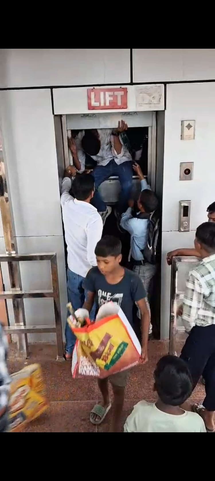 सासाराम ग्रामीण. सासाराम रेलवे स्टेशन पर लगे लिफ्ट में आयी खराबी के कारण बुधवार की सुबह करीब नौ बजे अचानक हड़कंप मच गया. रेलवे स्टेशन के प्लेटफार्म संख्या छह सात पर लगी लिफ्ट में करीब दस लोग फंस गये और उन्हें बाहर निकालने में लगभग आधे घंटे से अधिक का समय लग गया. इस दौरान प्लेटफॉर्म पर अफरातफरी दिखी और रेलवे कर्मचारियों को लिफ्ट में फंसे लोगों को बाहर निकालने में काफी परेशानी उठानी पड़ी. लिफ्ट में फंसे यात्रियों ने बताया कि करीब करीब दस लोग लिफ्ट से प्लेटफाॅर्म के फुट ओवरब्रीज से नीचे आ रहे थे, तभी लिफ्ट अचानक बंद हो गयी. इससे सभी लोग फंस गये. इसमें कुछ महिलाएं व बच्चे भी सवार थे. बीच में ही लिफ्ट बंद होने के बाद लिफ्ट का दरवाजा खोलने का काफी प्रयास किया, लेकिन दरवाजा नहीं खुला. लिफ्ट में फंसे लोगों ने अंदर से खूब आवाज लगायी, लेकिन उनकी आवाज बाहर नहीं आ सकी. फिर लिफ्ट में फंसे लोगों ने कड़ी मशक्कत के बाद किसी तरह लिफ्ट का दरवजा को खोला. लिफ्ट से कूद कूद कर लोग बाहर निकल सके. इस संबंध में स्टेशन प्रबंधक प्रवीण कुमार सिन्हा ने बताया कि स्टेशन के प्लेटफाॅर्म संख्या छह-सात पर लगे लिफ्ट में ओवरलोड के कारण तकनीकी खराबी के कारण कुछ लोग फंस गये थे, जिन्हें सकुशल बाहर निकाल लिया गया है. उन्होंने बताया कि लिफ्ट के खराब होने की जानकारी रेलवे के तकनीकी टीम को दे दी गयी है और जल्द हीं इसे ठीक कर एक बार फिर यात्रियों के लिए चालू कर दिया जायेगा.