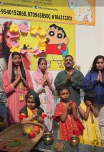 फोटो-6- मकून्स किड्स प्ले स्कूल में छठ पूजा की झांकी निकालते बच्चे़