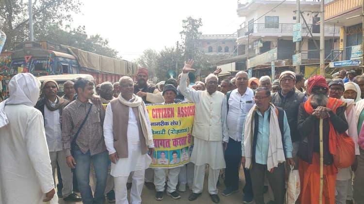 नेशनल सीनियर सिटीजन एसोसिएशन के बैनर तले निकाला गया जुलूस फोटो-4 – नगर पंचायत चेनारी में प्रदर्शन करते वरिष्ठ वरिष्ठ नागरीक. प्रतिनिधि, चेनारी प्रत्येक गांव में कैंप लगाकर वृद्धापेंशन के लिए केवाइसी कराने सहित अन्य मांगों को लेकर नेशनल सीनियर सिटीजन एसोसिएशन के बैनर तले राष्ट्रीय महासचिव रामायण पांडेय एलौन के नेतृत्व में वरिष्ठ नागरिकों ने प्रखंड मुख्यालय पर प्रदर्शन किया. महिला व पुरुष बुजुर्गों ने इंद्रा चौक से जुलूस निकाला और मुख्य बाजार में नारेबाजी करते हुए थाना पहुंचे. वहां थानाध्यक्ष को मांग पत्र सौंपने के बाद प्रखंड कार्यालय पहुंचकर सरकार को संबोधित ज्ञापन बीडीओ व सीओ को सौंपा. एलौन ने कहा कि वृद्धापेंशन के लिए केवाइसी को लेकर वरिष्ठ नागरिकों में अफरा-तफरी का माहौल है. बुजुर्ग प्रखंड कार्यालय और साइबर कैफे का चक्कर लगा रहे हैं, जबकि साइबर कैफे संचालक रात में सर्वर आने की बात कहते हैं, जिससे बुजुर्गों को भारी परेशानी हो रही है. उन्होंने कहा कि कई बुजुर्ग चलने-फिरने में असमर्थ रहते हैं, इसलिए सरकार से मांग है कि सभी गांवों में कैंप लगाकर केवाइसी करायी जाये. संघ की प्रमुख मांगों में वृद्धजन, विधवा व दिव्यांग पेंशन की राशि 1100 रुपये से बढ़ाकर 2000 रुपये करने, बंद की गयी रेल किराया छूट को पुनः बहाल कराने, 60 से 70 वर्ष आयु वर्ग के बुजुर्गों को भी आयुष्मान भारत योजना में शामिल करने व पुलिस थानों में सीनियर सिटीजन सेल का गठन कर उसकी नियमित बैठक कराने की मांग शामिल है. मौके पर बबन सिंह, नागेश्वर उर्फ नगीना सिंह, सुग्रीव प्रसाद सिंह, सत्यनारायण स्वामी, सच्चिदानंद सिंह, शिवमूरत सिंह, सतेंद्र नारायण, बिहारीलाल पाल, विमल पांडेय, अजय यादव, शिवम दुबे सहित सैकड़ों वरिष्ठ नागरिक शामिल थे.