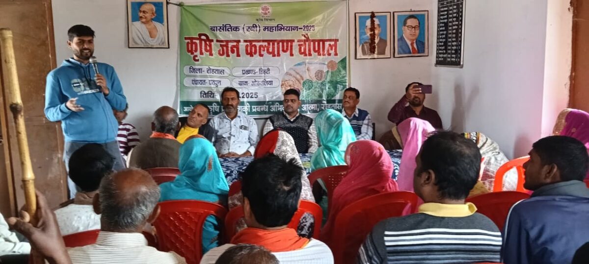 SASARAM NEWS.प्रखंड क्षेत्र की पतपुरा पंचायत के ओझवलिया गांव स्थित पंचायत भवन में बुधवार को कृषि विभाग ने आत्मा के तत्वावधान में किसान चौपाल आयोजित की. जिसमें प्रखंड कृषि विभाग व आत्मा से अधिकारियों ने किसानों को उन्नत खेती व प्राकृतिक खेती का गुर सिखाये.