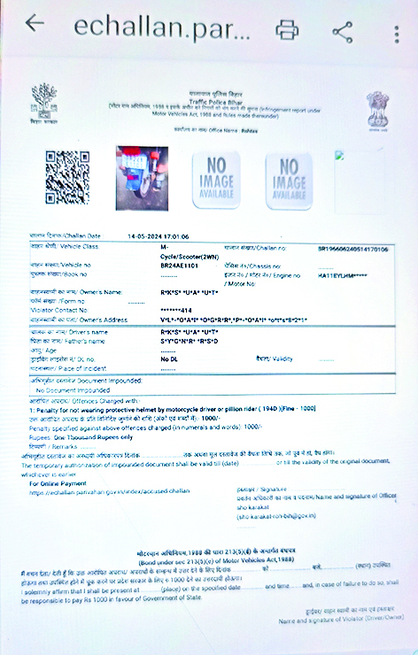 काराकाट. मोटरयान अधिनियम के तहत कार्रवाई करते हुए पुलिस ने एक ही बाइक का 10 मिनट के अंतराल में दो बार एक-एक हजार का ऑनलाइन चालान काट दिया. मामला काराकाट थाना क्षेत्र के गोड़ारी का बताया जाता है. ऑनलाइन चालान काटने का मामला 14 मई 2024 का बताया जाता है. बाइक मालिक अभिनय राज नेट पर ऑनलाइन चालान का जुर्माना भरने पहुंचे, तो नेट पर दो ऑनलाइन चालान दिखने लगा. परेशान बाइक मालिक ने थाना पहुंच कर इसकी जानकारी ली, तो बताया कि ऐसा नहीं होना चाहिए. अगर हुआ है तो गलत है. गौरतलब है कि नासरीगंज बिक्रमगंज एनएच- 120 पर 14 मई 2024 को गोड़ारी में वाहन चेकिंग अभियान चलाया गया था. बाइक नंबर बीआर 24 एई1101 का पहला ऑनलाइन चालान संख्या-बीआर 196606240514164636 समय 16.46.36 और इसी बाइक का दूसरा ऑनलाइन चालान संख्य -बीआर 1966066240514170106 समय 17.01.06 में पुनः चालान काट दिया गया. एक ही बाइक का 10 मिनट में दो बार चालान कट जाने से बाइक मालिक परेशान हो गया. मामले की जानकारी लेने बाइक मालिक अभिनय राज काराकाट थाना पहुंचा, तो सभी आश्चर्य करने लगे कि इस तरह का नियम नहीं है. एक ही थाना क्षेत्र में वह भी 10 मिनट के अंतराल में दो बार ऑनलाइन चालान काटा गया है, तो यह नियमानुकूल नहीं है. अगर बाइक का एक बार चालान कट गया, तो 24 घंटे के बाद ही ऑनलाइन चालान काटा जाना चाहिए. वैसे इस तरह की लापरवाही पुलिस के लिए आमजनों को परेशान करने के अलावा कुछ नहीं है. थानाध्यक्ष फूलदेव चौधरी से जानकारी लेने पर बताया कि एक बार ही ऑन लाइन चालान काटा जाना चाहिए, न कि दो बार अगर ऐसी बात होगी तो इस पर ध्यान दिया जाएगा . जिला परिवहन पदाधिकारी रोहतास वीके शर्मा से जानकारी लेने पर बताया कि धोखे से ऑनलाइन चालान काट दिया होगा. अगर ऐसी बात है, तो इसके लिए थाने में एक आवेदन दे देने के बाद एक ऑनलाइन चालान माफ हो जायेगा.