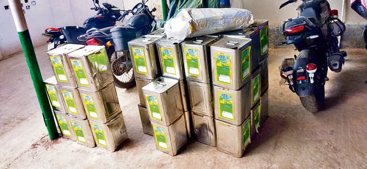 सासाराम ग्रामीण. नोखा थाना क्षेत्र के बाजार से शनिवार को 105 लीटर नकली खाद्य तेल सहित करीब 31 हजार नकली रैपर बरामद किया है. इस मामले में थाने में प्राथमिकी दर्ज की गयी है. इसकी जानकारी बन्गे इंडिया प्रा. लि. के उत्पाद गगन एक्टिव रिफाइंड के जांच अधिकारी मधुबनी जिले के खजौली थाना क्षेत्र के सुथकी गांव निवासी बिंदेश्वर सिंह के पुत्र रंजीत कुमार सिंह ने दी. उन्होंने बताया कि सूचना मिली कि नोखा पश्चिम दुर्गा मंदिर के समीप गगन एक्टिव रिफाइंड ऑयल का नकली तेल को गोदाम में रखकर बिक्री की जा रही है. इसकी सूचना नोखा थाना को दी गयी. इसके साथ कंपनी के अधिकारी व पुलिस ने नोखा के शिवनंदन शर्मा के 50 वर्षीय पुत्र लाल बाबू शर्मा के गोदाम में छापेमारी की गयी. इसमें 15 किलो का सात पीस यानी 105 लीटर रिफाइंड तेल, खाली टीना 35 पीस व 31780 पीस कंपनी के नाम का नकली रैपर बरामद किया गया. उन्होंने बताया कि इस मामले में थाने में प्राथमिकी करायी गयी है. इसके साथ पुलिस ने तेल सहित अन्य वस्तु को जब्त किया है. इस संबंध में थानाध्यक्ष ने बताया कि ट्रेडमार्क व कॉपीराइट अधिनियम के तहत प्राथमिकी दर्ज कर कार्रवाई की जा रही है.