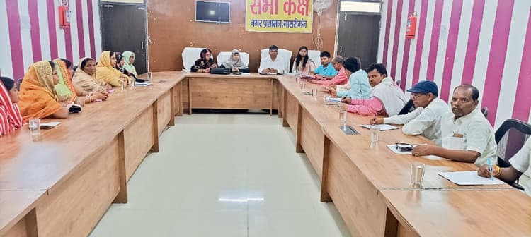 नासरीगंज. नगर पंचायत के सामान्य बोर्ड की बैठक बुधवार को नगर पंचायत के सभागार में हुई. इसकी अध्यक्षता मुख्य पार्षद शबनम आरा ने की. इस दौरान प्रभारी कार्यपालक पदाधिकारी जगरनाथ यादव व उपमुख्य पार्षद कलावती देवी समेत सभी वार्ड पार्षद मौजूद थे. बैठक में कई मुद्दों पर विचार-विमर्श किया गया. इस दौरान पेश किये गये प्रस्तावों को वार्ड पार्षदों ने एक स्वर में पारित कर दिया. बैठक में मुख्य रूप से नगर पंचायत के विकास को लेकर चर्चा हुई. इसमें विभिन्न योजनाएं ली गयीं. मुख्य पार्षद ने बताया कि बोर्ड की बैठक में मुख्य रूप से बरसात के मौसम से पहले शहर के सभी वार्डों की नाली व नाले की साफ सफाई करायी जायेगी, ताकि शहरवासियों को किसी तरह की कोई परेशानी न हो. इस दौरान पूर्व में निकाली गयी निविदा में बाकी बची हुई योजनाओं को पुनः निविदा प्रक्रिया में लाने का निर्णय लिया गया.