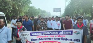 सासाराम ऑफिस. बिहार विधानसभा चुनाव-2025 के तहत बुधवार को सासाराम शहर मतदाता जागरूकता के रंग में रंगा नजर आया. जिला प्रशासन व बिहार पब्लिक स्कूल एंड चिल्ड्रेन वेलफेयर एसोसिएशन के संयुक्त तत्वावधान में निकाली गयी विशाल मतदाता जागरूकता रैली ने शहरवासियों का ध्यान अपनी ओर खींच लिया. यह रैली संत जोसेफ स्कूल कनोडिया पंप परिसर से शुरू होकर फजलगंज स्टेडियम तक निकाली गयी. लगभग 600 से अधिक शिक्षक, छात्र-छात्राओं ने ””पहले मतदान, फिर जलपान”” व ””आपका वोट, आपका अधिकार”” जैसे नारों के साथ पूरे शहर को लोकतंत्र के रंग में सराबोर कर दिया. रैली की शुरुआत डिप्टी कलेक्टर विनय कुमार व ट्रैफिक एसएचओ सुबोध कुमार ने हरी झंडी दिखाकर की. जिला शत-प्रतिशत मतदान के लक्ष्य को प्राप्त करेगा इस अवसर पर बिहार पब्लिक स्कूल एंड चिल्ड्रन वेलफेयर एसोसिएशन के जिलाध्यक्ष संतोष कुमार की अध्यक्षता में कार्यक्रम संपन्न हुआ. रैली में शामिल बच्चों ने हाथों में बैनर, तख्तियां और रंग-बिरंगे झंडे लेकर लोगों से मतदान दिवस पर मतदान केंद्र तक पहुंचने की अपील की. डिप्टी कलेक्टर ने संबोधित करते हुए कहा कि शिक्षक समाज का प्रेरक स्तंभ हैं. उन्होंने कहा कि छात्र-छात्राएं अपने शिक्षकों की बातों को माता-पिता से भी अधिक महत्व देते हैं. यदि शिक्षक मतदान के प्रति प्रेरित करेंगे, तो निश्चय ही अभिभावक, पड़ोसी और समाज के अन्य लोग भी मतदान करने अवश्य आगे आयेंगे. उन्होंने यह भी जोड़ा कि शिक्षकों की अपील से मतदान प्रतिशत में वृद्धि होगी और जिला शत-प्रतिशत मतदान के लक्ष्य को प्राप्त करेगा. रैली में शामिल एसोसिएशन के सदस्यों ने कहा कि 11 नवंबर को होने वाले मतदान में अधिक से अधिक लोग मतदान करें. इसके लिए वे गांव-गांव, मुहल्ला-मुहल्ला जाकर मतदाताओं को बूथ तक पहुंचाने का कार्य करेंगे. इस अवसर पर एसोसिएशन के संरक्षक राजदेव गिरि, प्रदेश सचिव अमित प्रकाश, जिला उपाध्यक्ष अरुण कुमार पांडेय, महासचिव अश्वनी कुमार, सचिव सुनील कुमार चौधरी, उपसचिव नरेन्द्र सिंह, कोषाध्यक्ष सरदार सत्यजीत सिंह, कोऑर्डिनेटर देवाशीष कुमार, डॉ चंद्र मणिकांत, चंदेश्वर कुमार, शागिल जमाल, ब्रिज बिहारी राय, गौरव श्रीवास्तव, अमित कुमार सिंह, संदीप कुमार, संजय कुमार कश्यप सहित शिक्षक, अभिभावक, पदाधिकारी मौजूद रहे. इस रैली में सासाराम के सात दर्जन से अधिक स्कूलों ने बढ़-चढ़कर भाग लिया़ इनमें प्रमुख रूप से राजेंद्र विद्यालय, संत जोसेफ स्कूल, स्कॉटिश सेंट्रल स्कूल, जीएस रेजिडेंशियल स्कूल, बुद्धा मिशन स्कूल, एमराल्ड हेरिटेज स्कूल, गैलेक्सी कान्वेंट स्कूल, बाबा किड्स गार्डन, श्री गुरु तेग बहादुर विद्या निकेतन, लिटिल एंजेल प्ले स्कूल, स्मार्ट किड्स ब्लॉसम स्कूल, अरिहंत पब्लिक स्