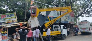 बिना अनुमति के नगर क्षेत्र में लगे होर्डिंग- बैनर को नगर प्रशासन ने हटाया